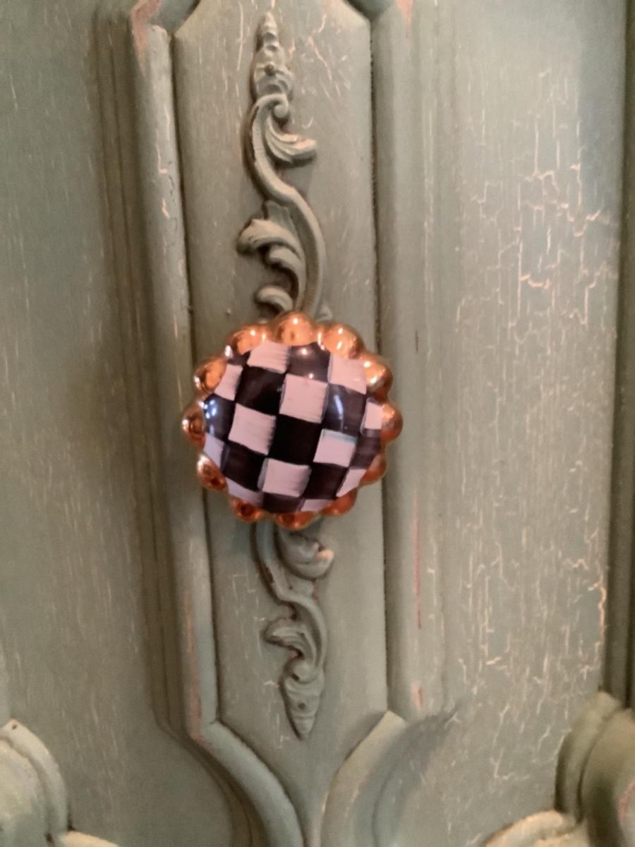 K. 855 French Country Style Painted Cabinet with Mackenzie Childs Pull Knobs