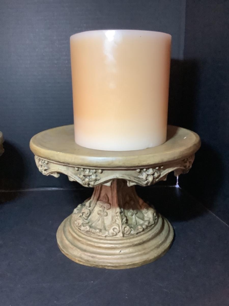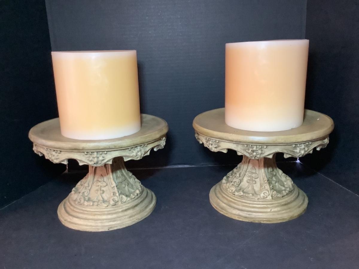 K. 894. Pair of Pedestal Candle Holders with Pillar Candles