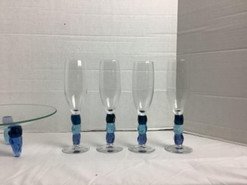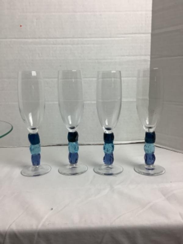 4 - Blue Glass Rock Stemware, 8.5” Tall
