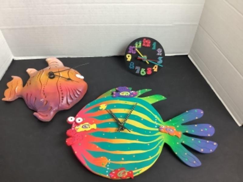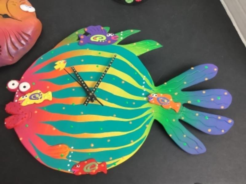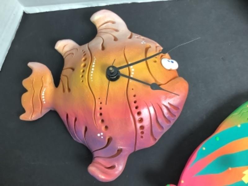 1 ) Large Fish with small fish Clock - measures 14.5” Wide x 10.5” Tall