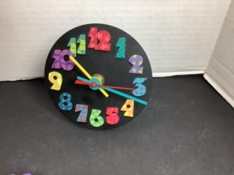 1 ) Black Backing/Colorful Numbers Clock - measures 5” Round