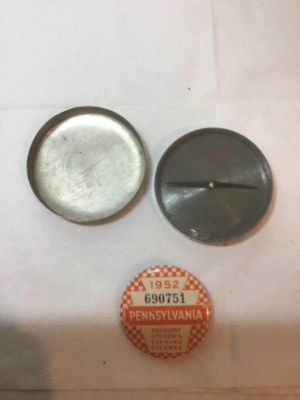 K - 992  Vintage Compass & Pennsylvania Fishing License Pin