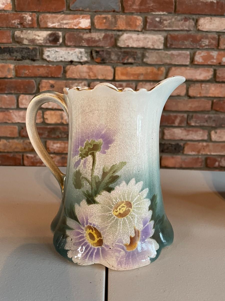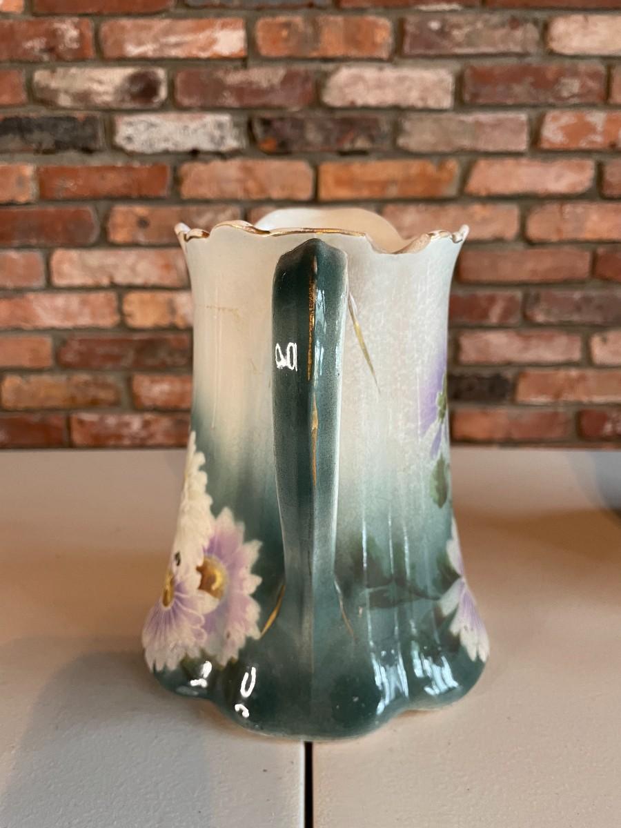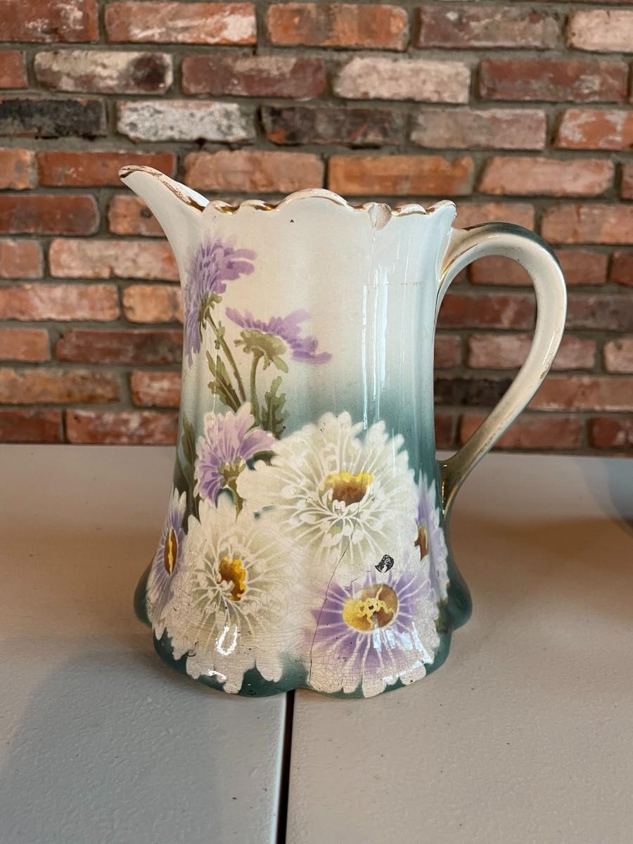 K & G Luneville France Purple Daisy Tankard Pitcher/Vase