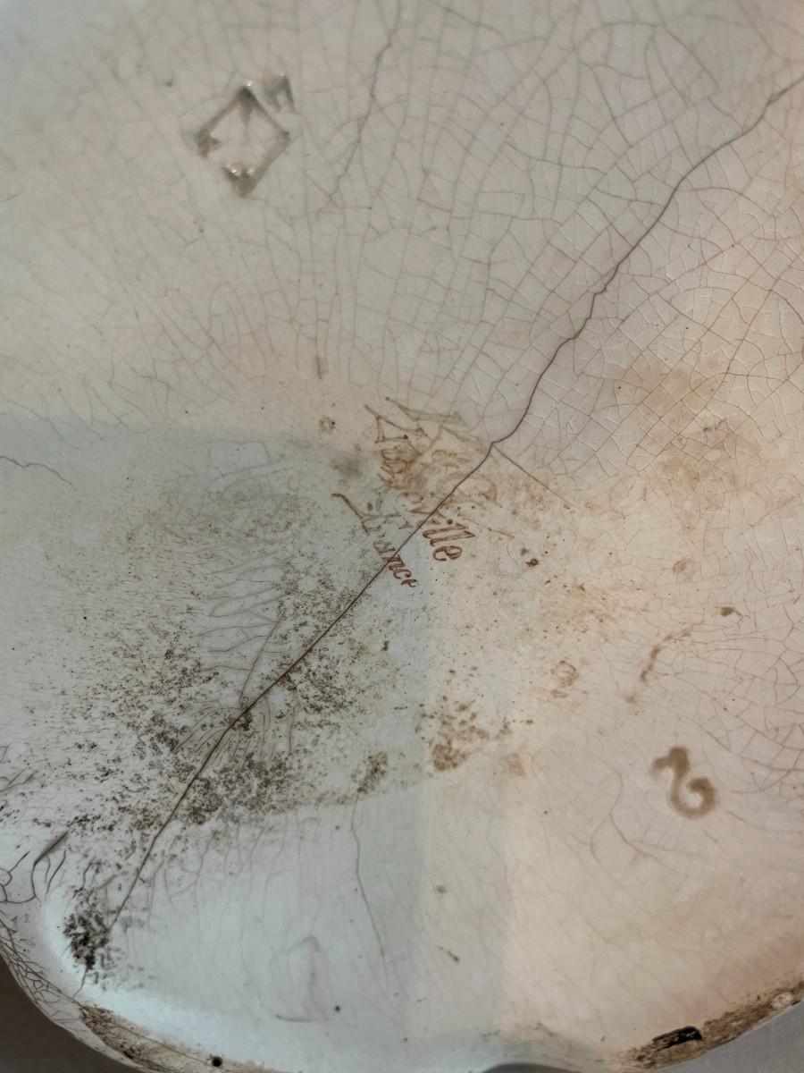 Ceramic had painted with gold trim. Made in Luneville France by Keller & Guerin. 7 1/2W x 7 1/2H.