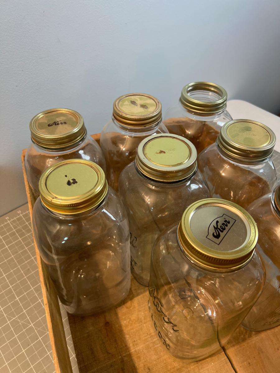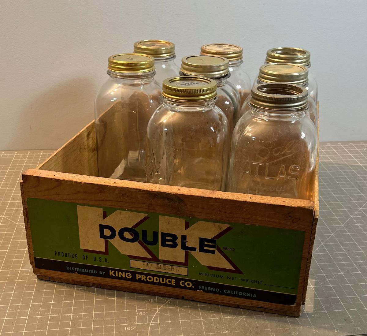 K K Double Crate for Grapes with 8 - 1/2 Gallon Mason Jars