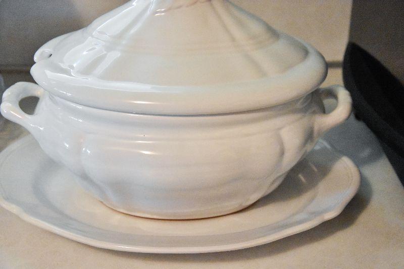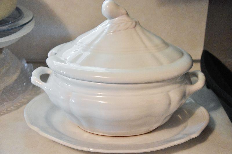 Soup tureen on tray, no ladle.