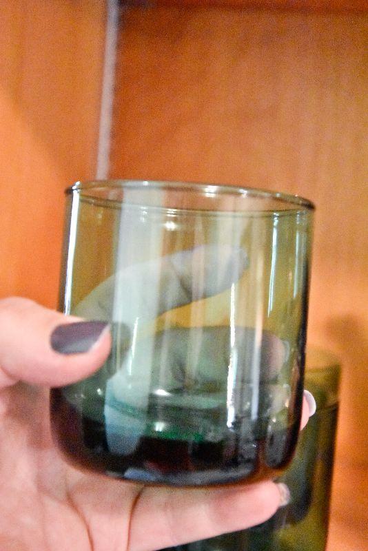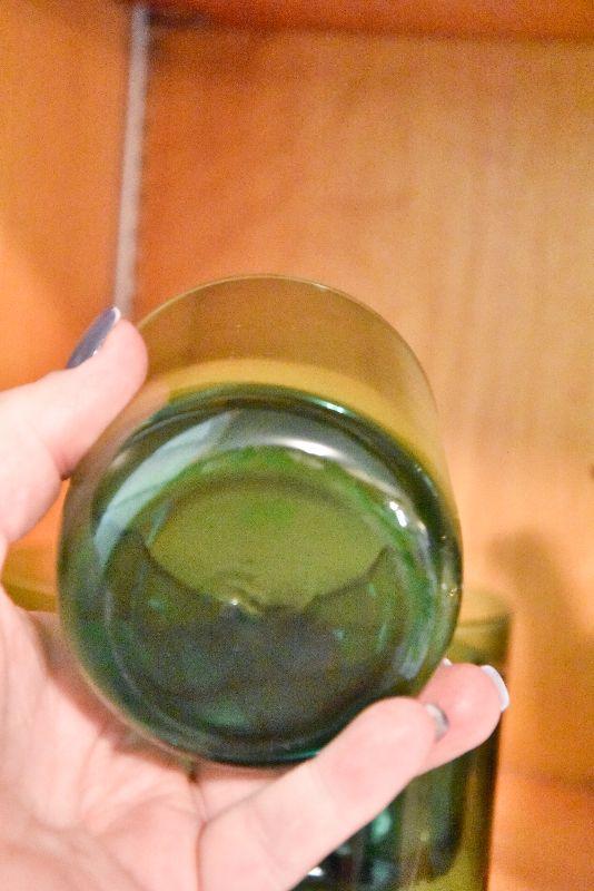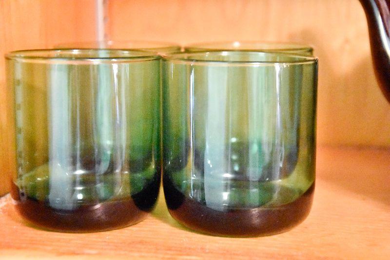 Green tumblers, no chips.