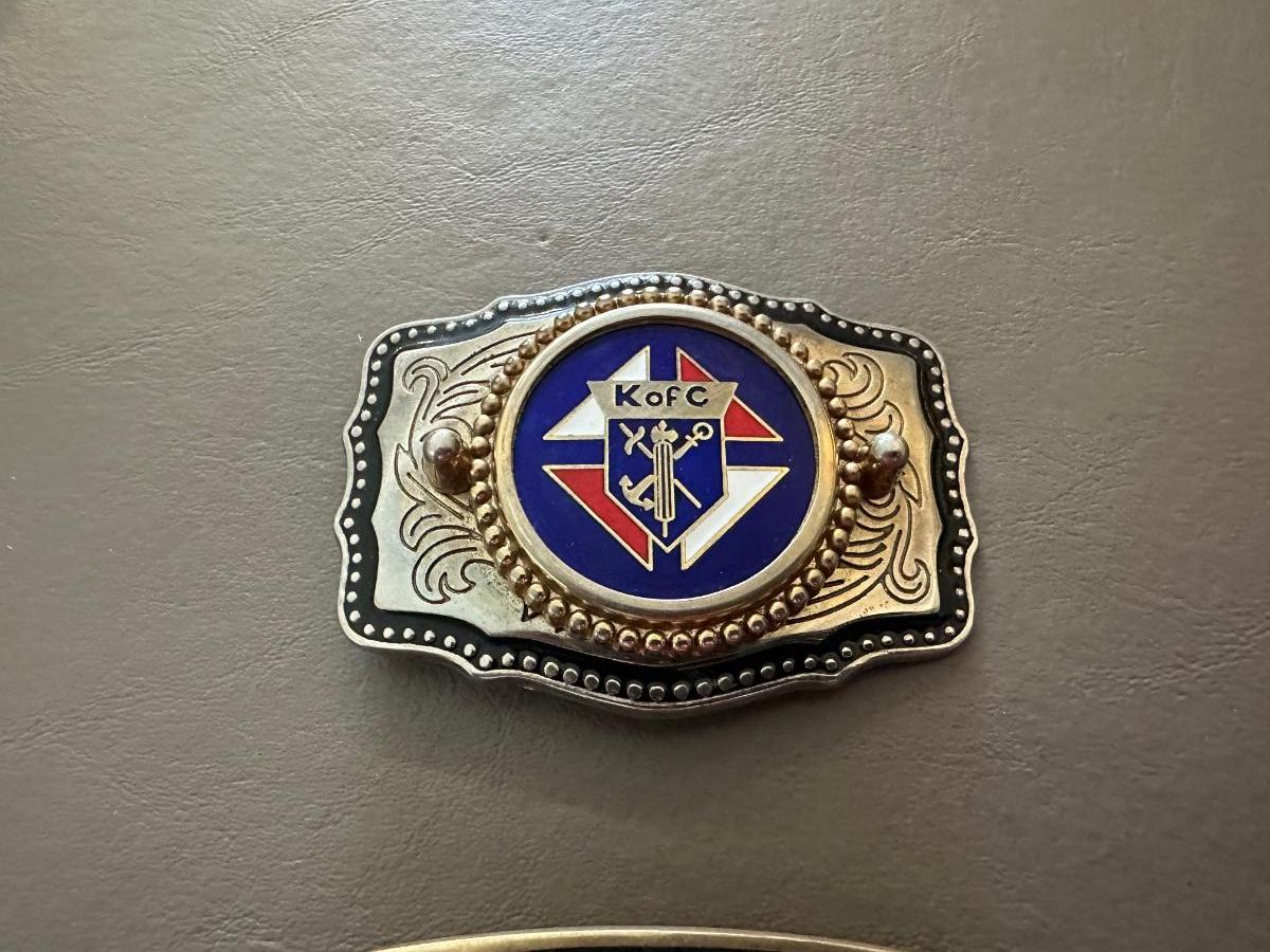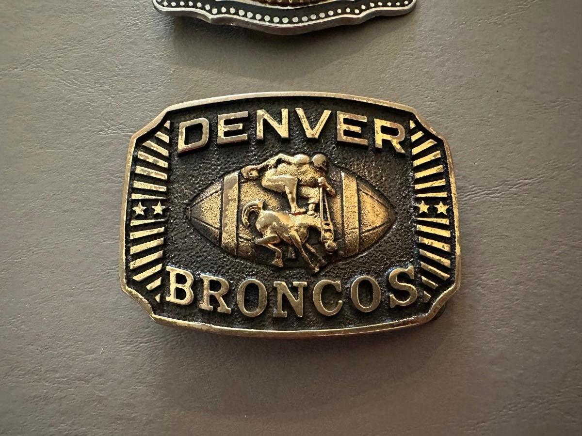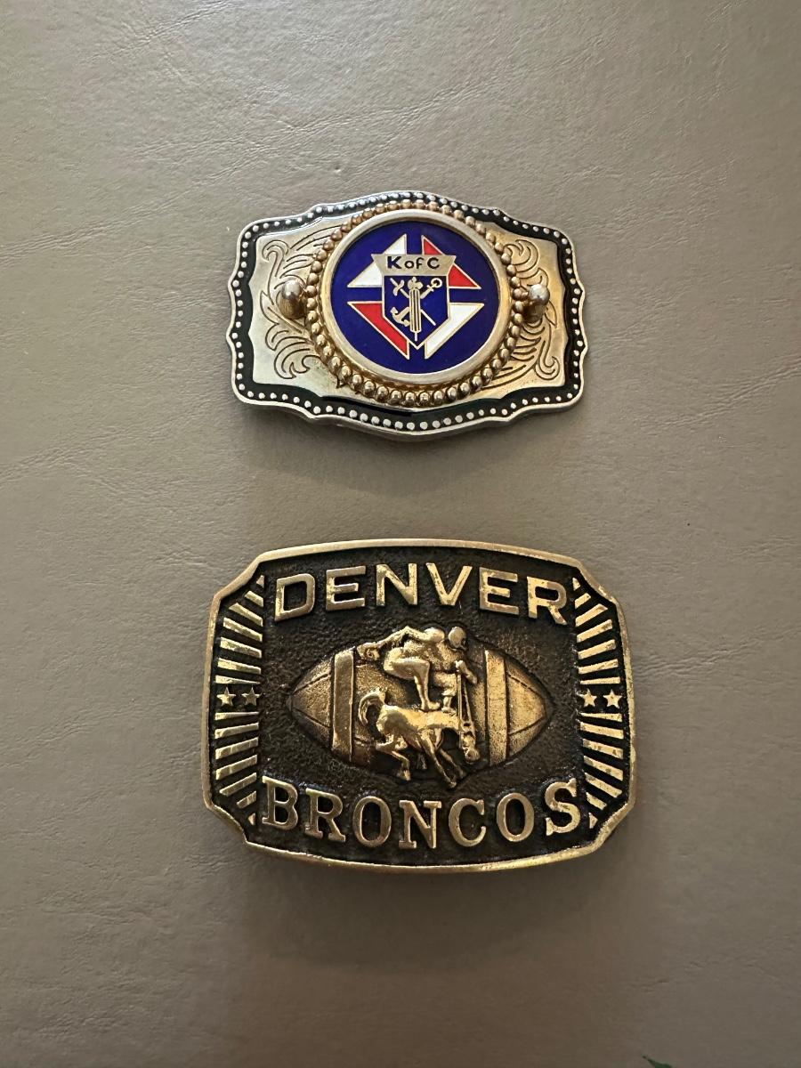 K OF C BELT BUCKLE AND 1976 DENVER BRONCOS BELT BUCKLE