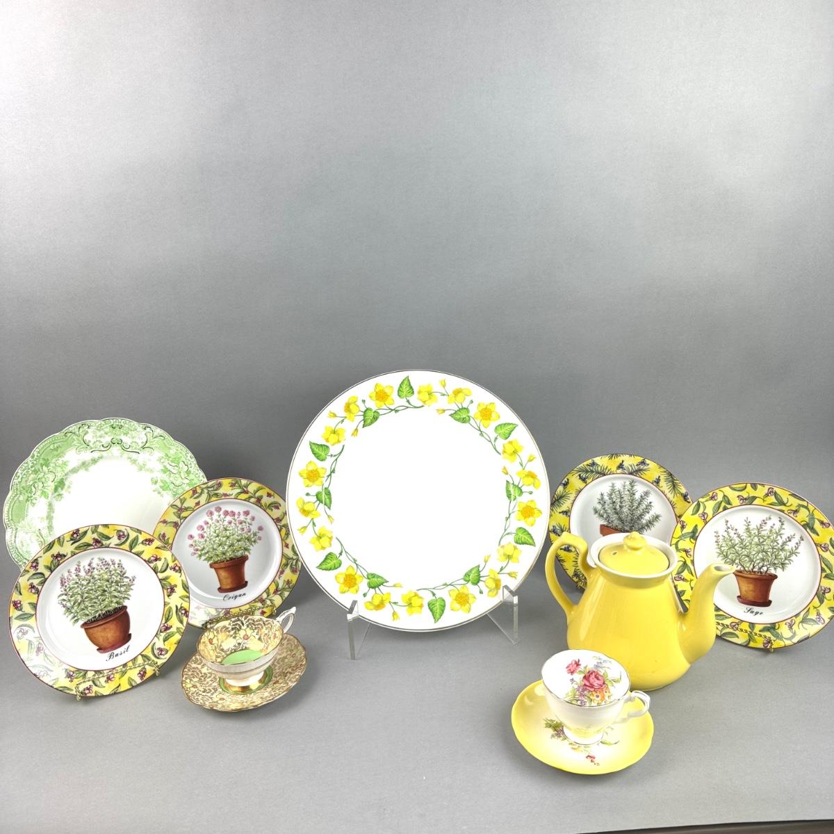 K024 Large Wedgwood 13" Kingcup Platter, Herb Plates, Hall Teapot