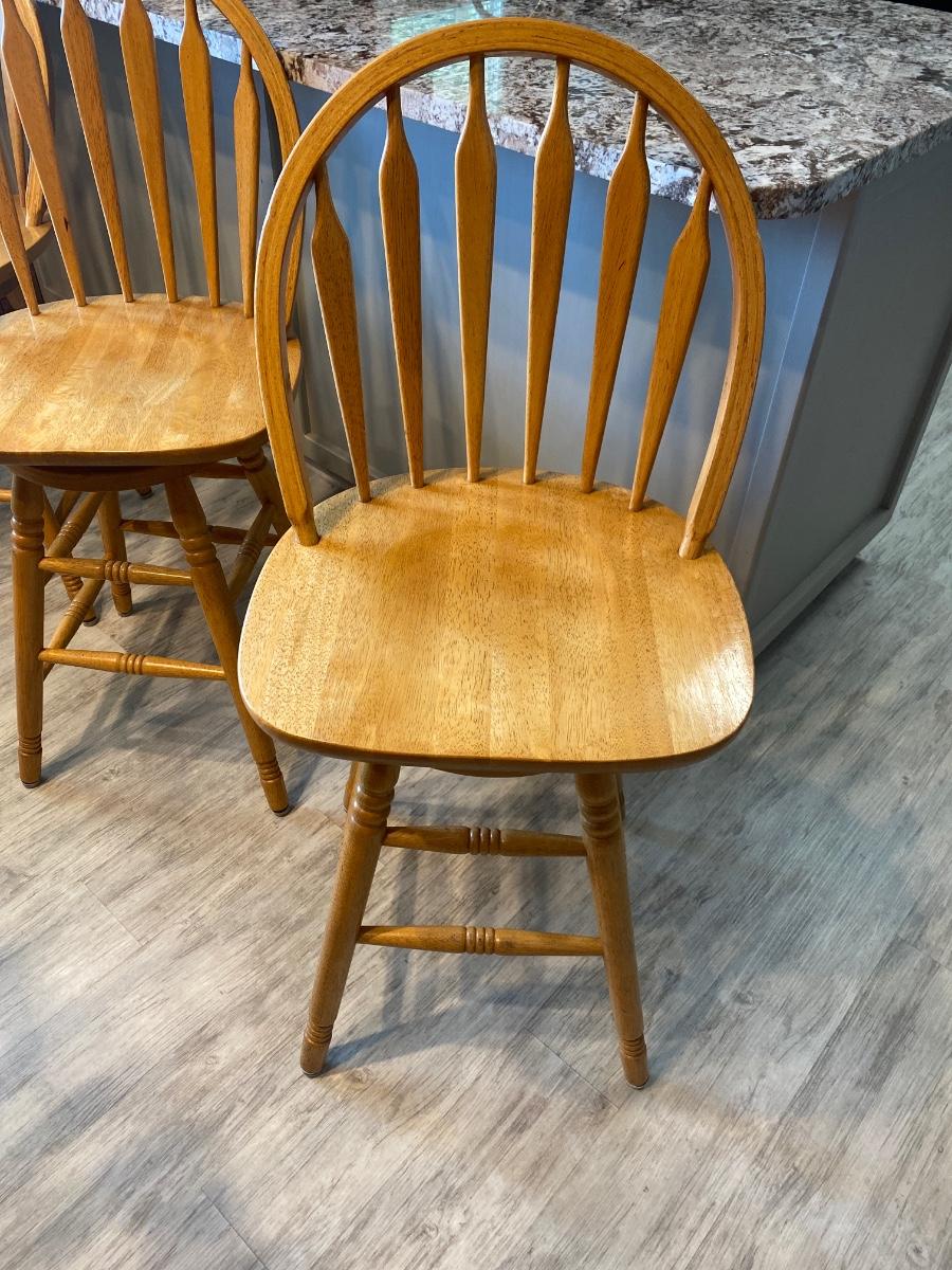 K1 3 Swiveling bar stools, Seat is 24 1/2” tall, 18” w 18”, D 17”