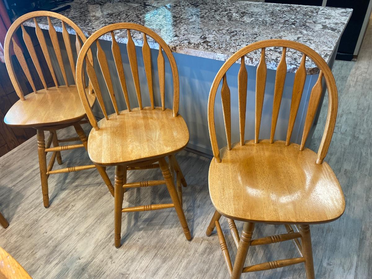 K1 3 bar stools, Seat is 24 1/2” tall, 18” w 18”, D 17”