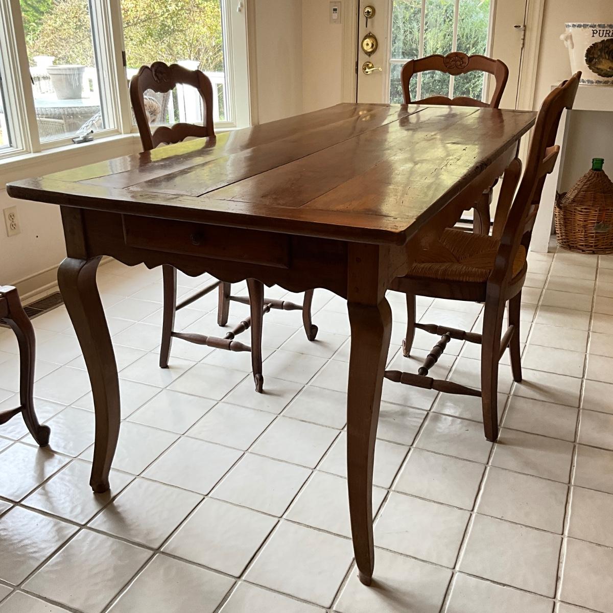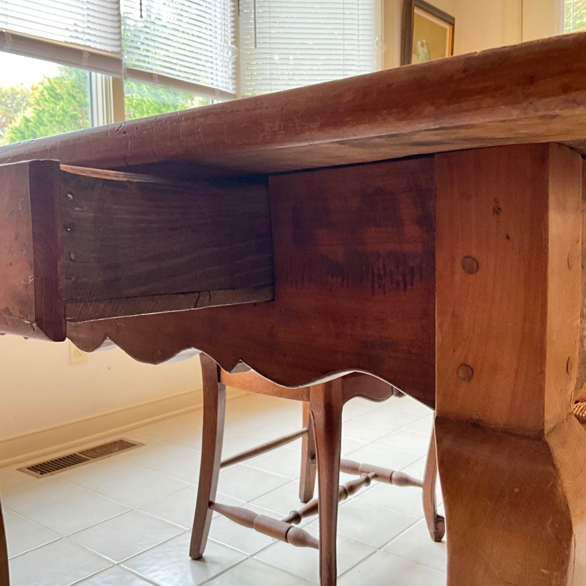 K103 Antique French Country Farm Table With Pull-Out & Drawer