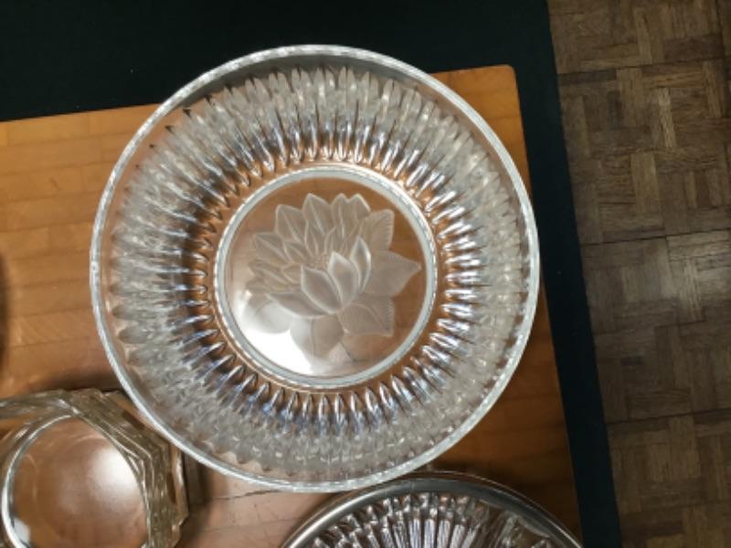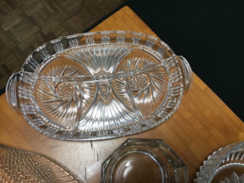 The largest piece is 15 1/4” long x 12 1/4” wide. The smallest is 5 3/4” dia. X 3 5/8” tall.