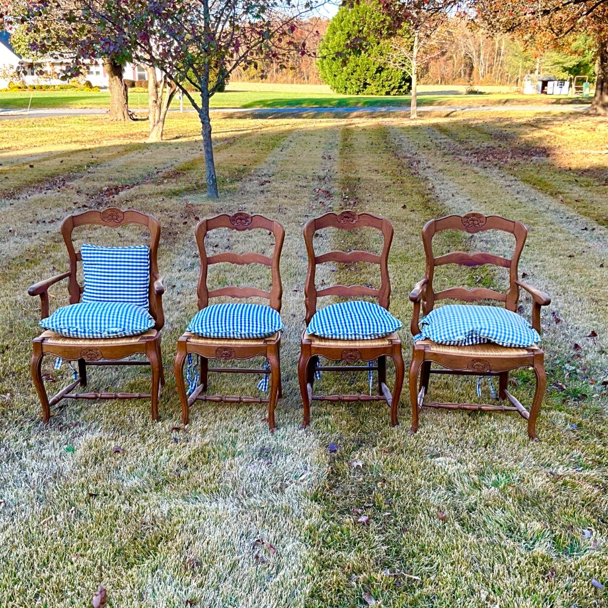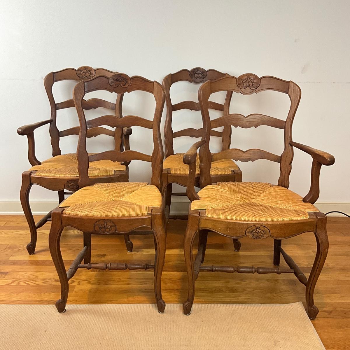 K104 Vintage French Provincial Style Chairs With Rush Seats