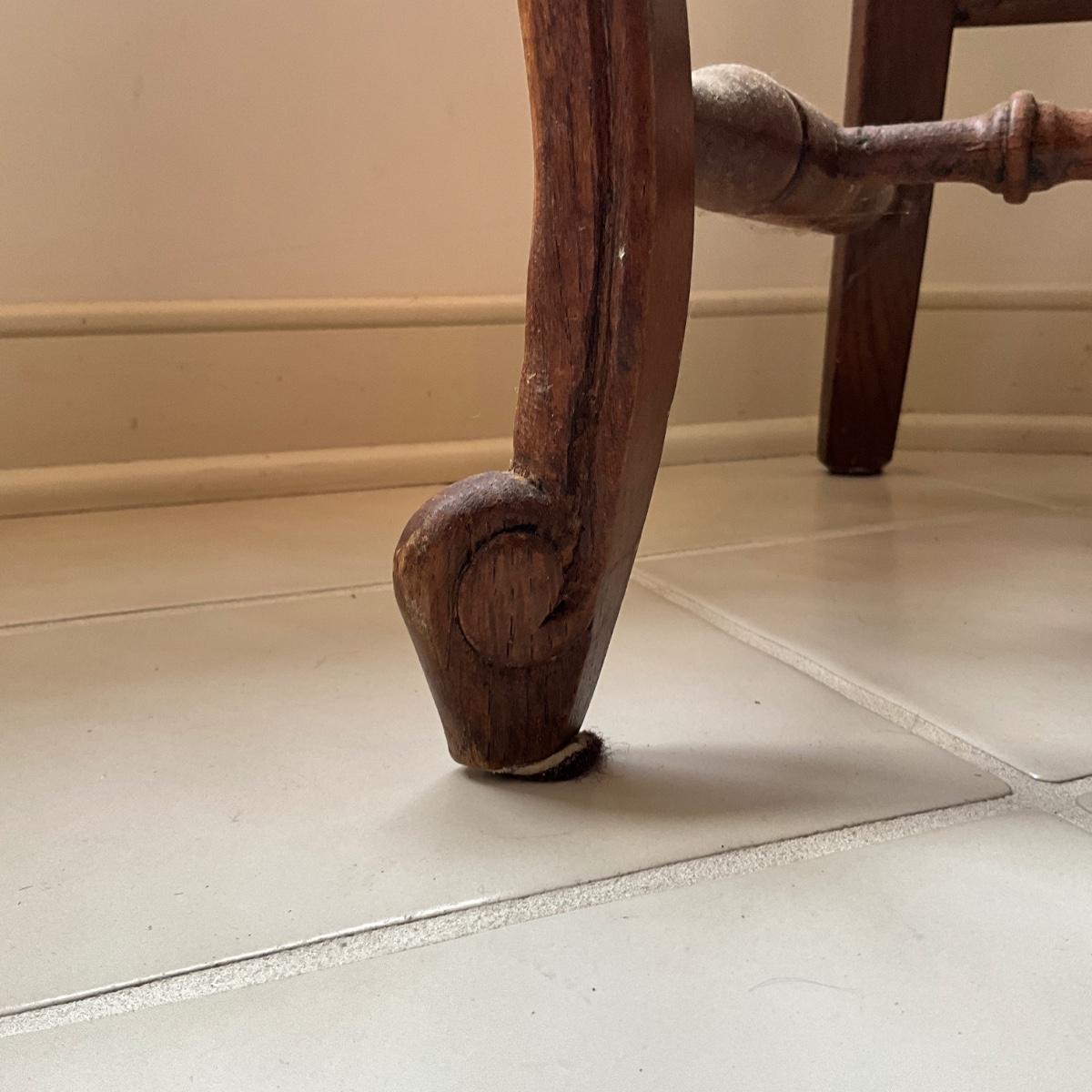 Oak wood, scroll feet, woven straw
