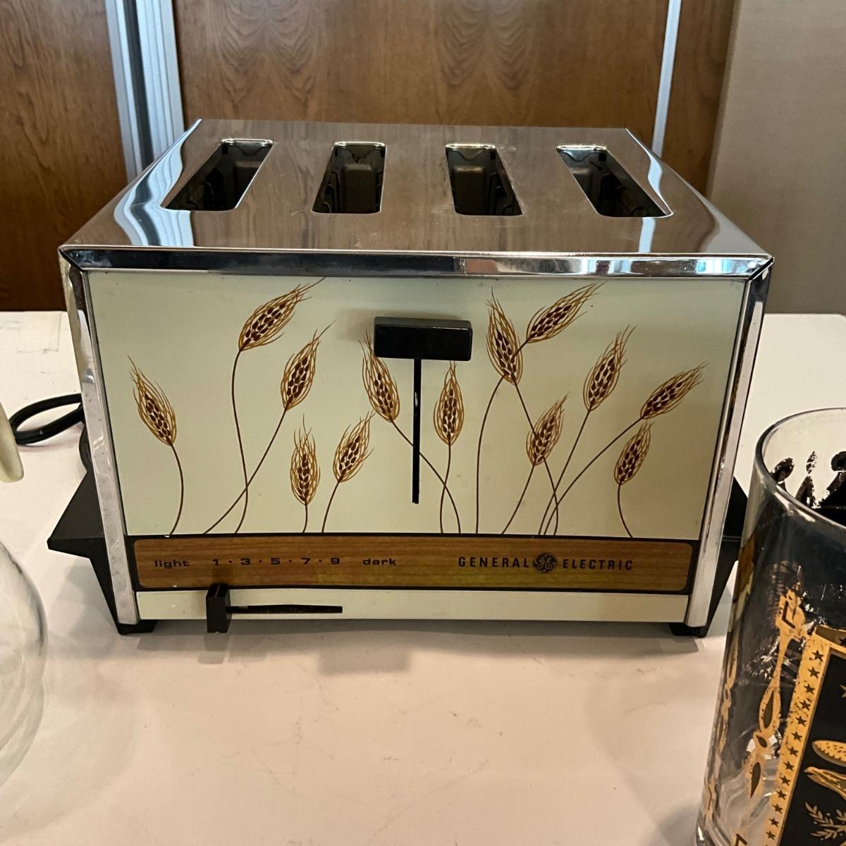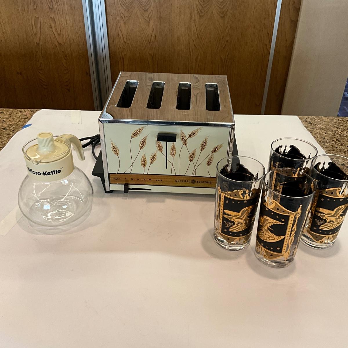 K1042 Vintage 80's 4 Slice GE Wheat Toaster, MCM Black Eagle Glasses