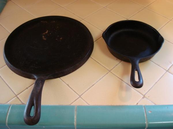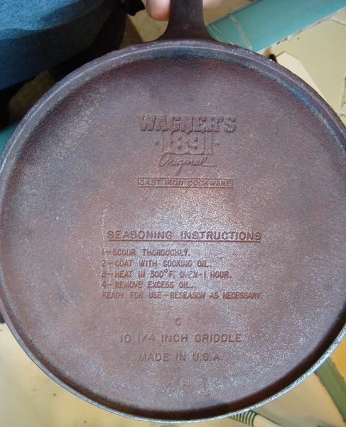 The 10 1/4" flat griddle is marked Wagner but the smaller 6.5" skillet is unmarked by any maker.