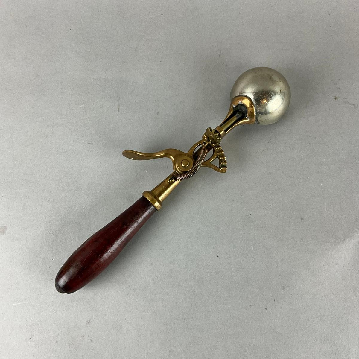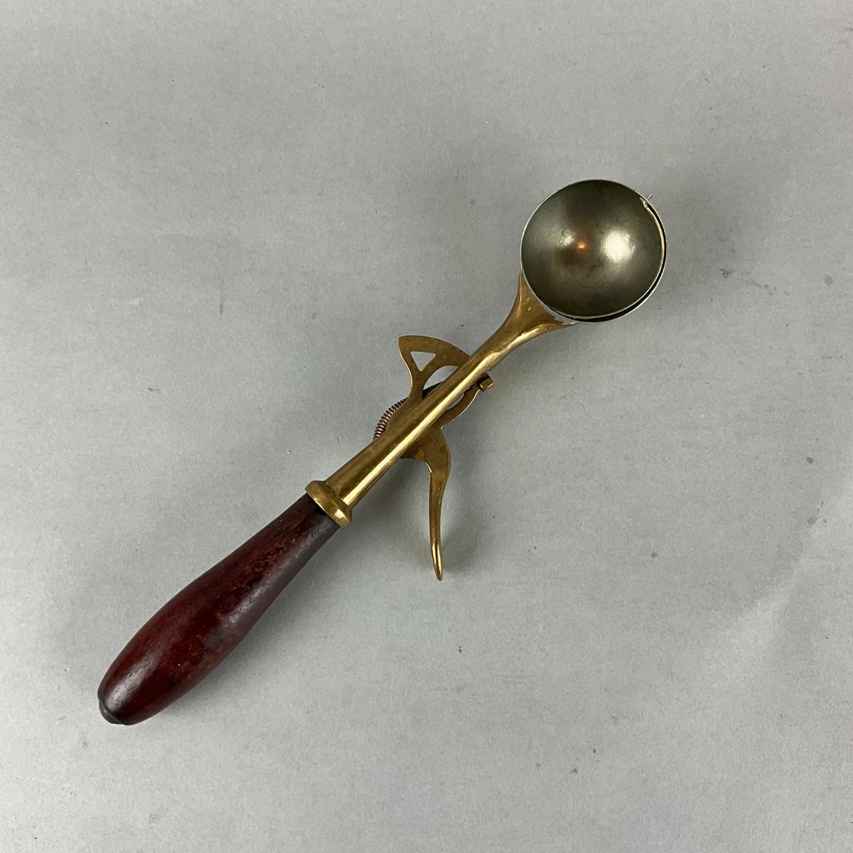 K1066 Antique 1930s Brass Ice Cream Scoop With Wooden Handle