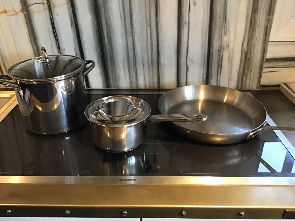 K107 - Morganware Pot, Innova Classico Saucepan, All Clad 13” Stainless Frypan