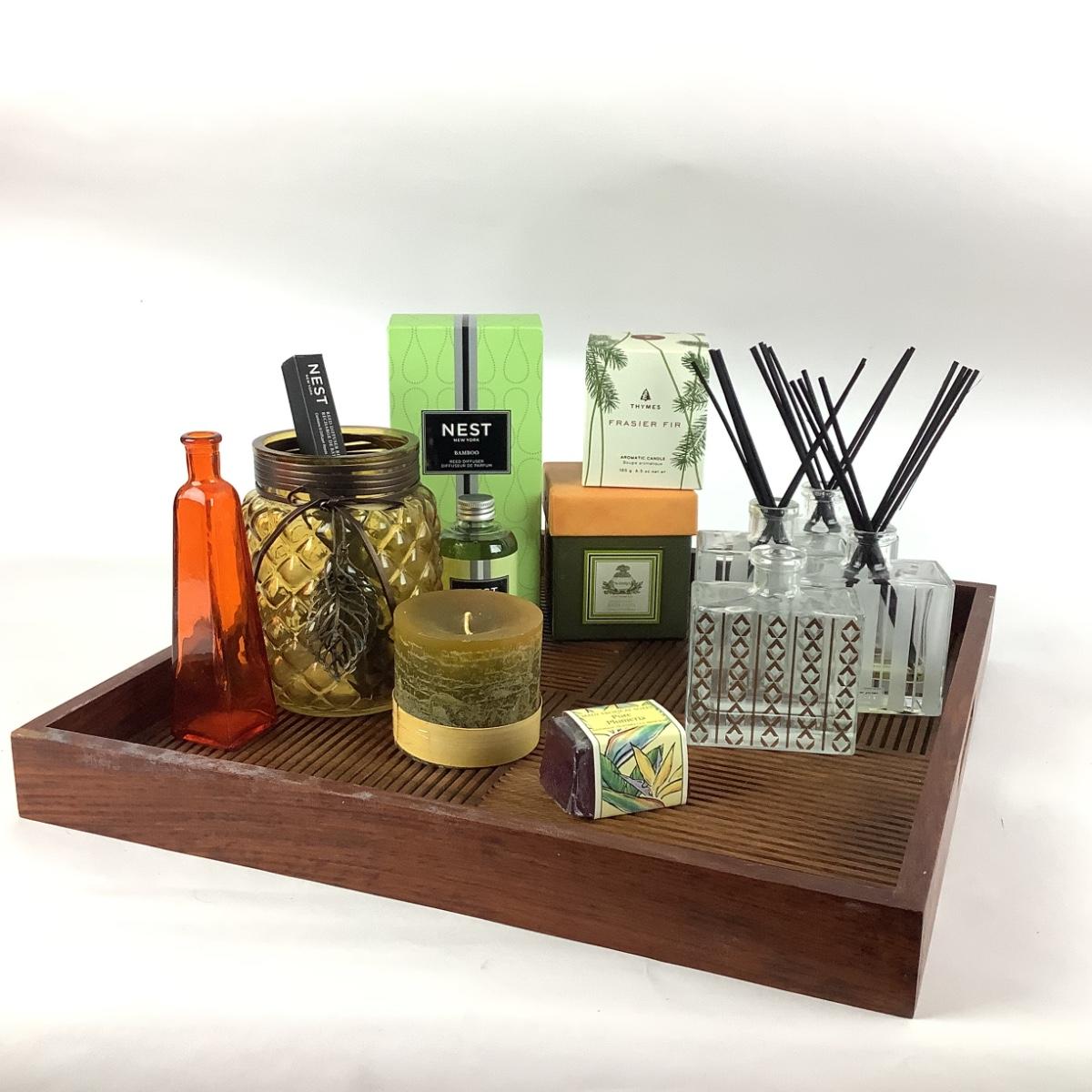 K1075 REED Diffuser Lot with New in Box Diffuser Parfume, Bath Salts, Candle and more