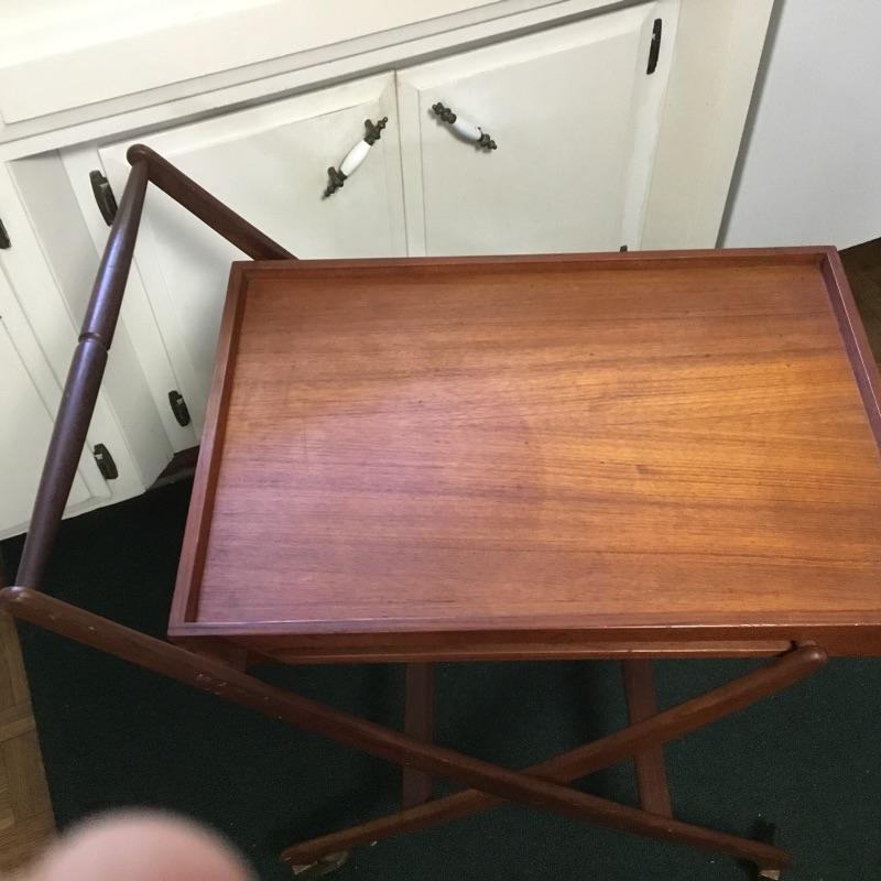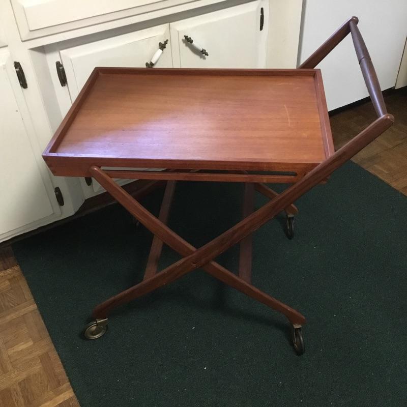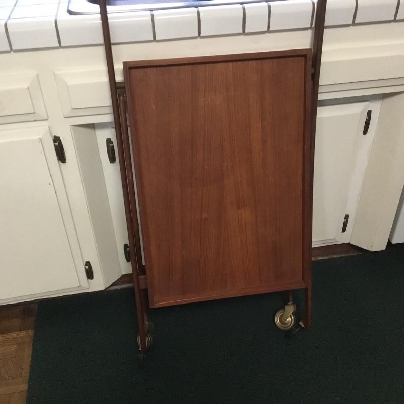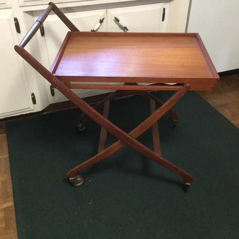 Mid Century modern walnut tea cart, folding