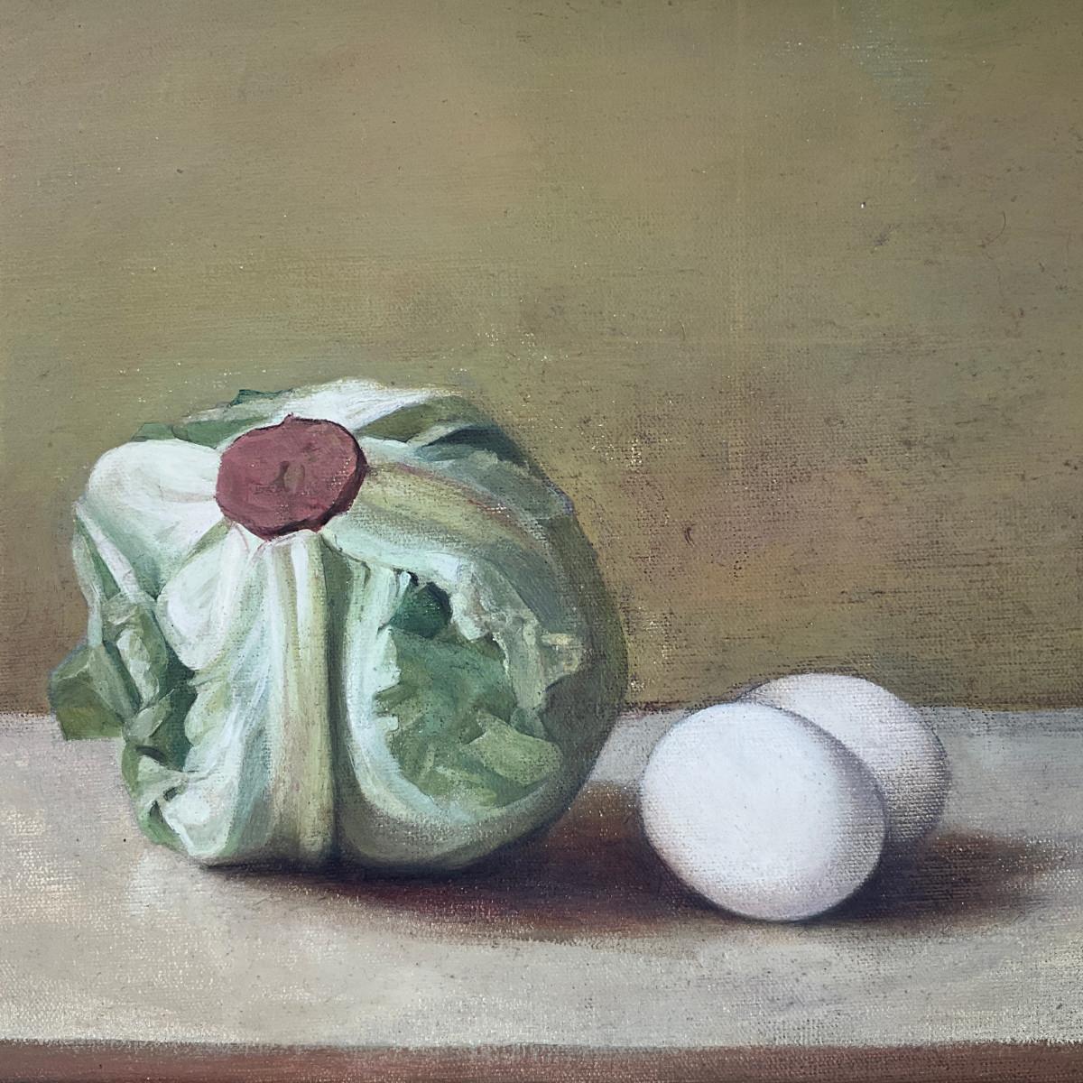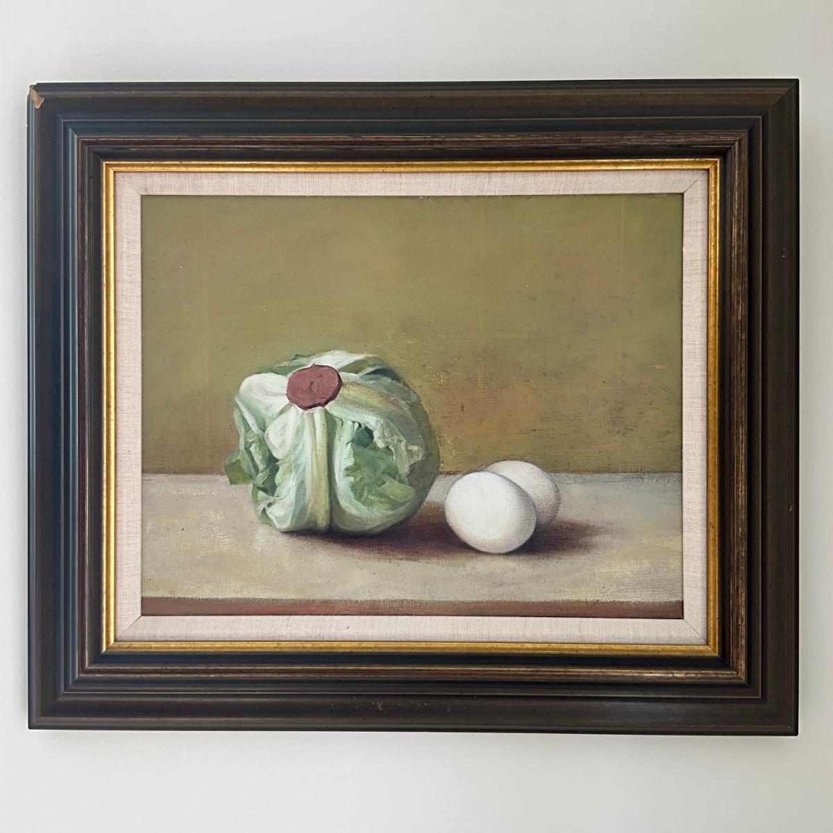 K114 Original Oil On Canvas Lettuce And Egg Still-Life By JIm Garrison
