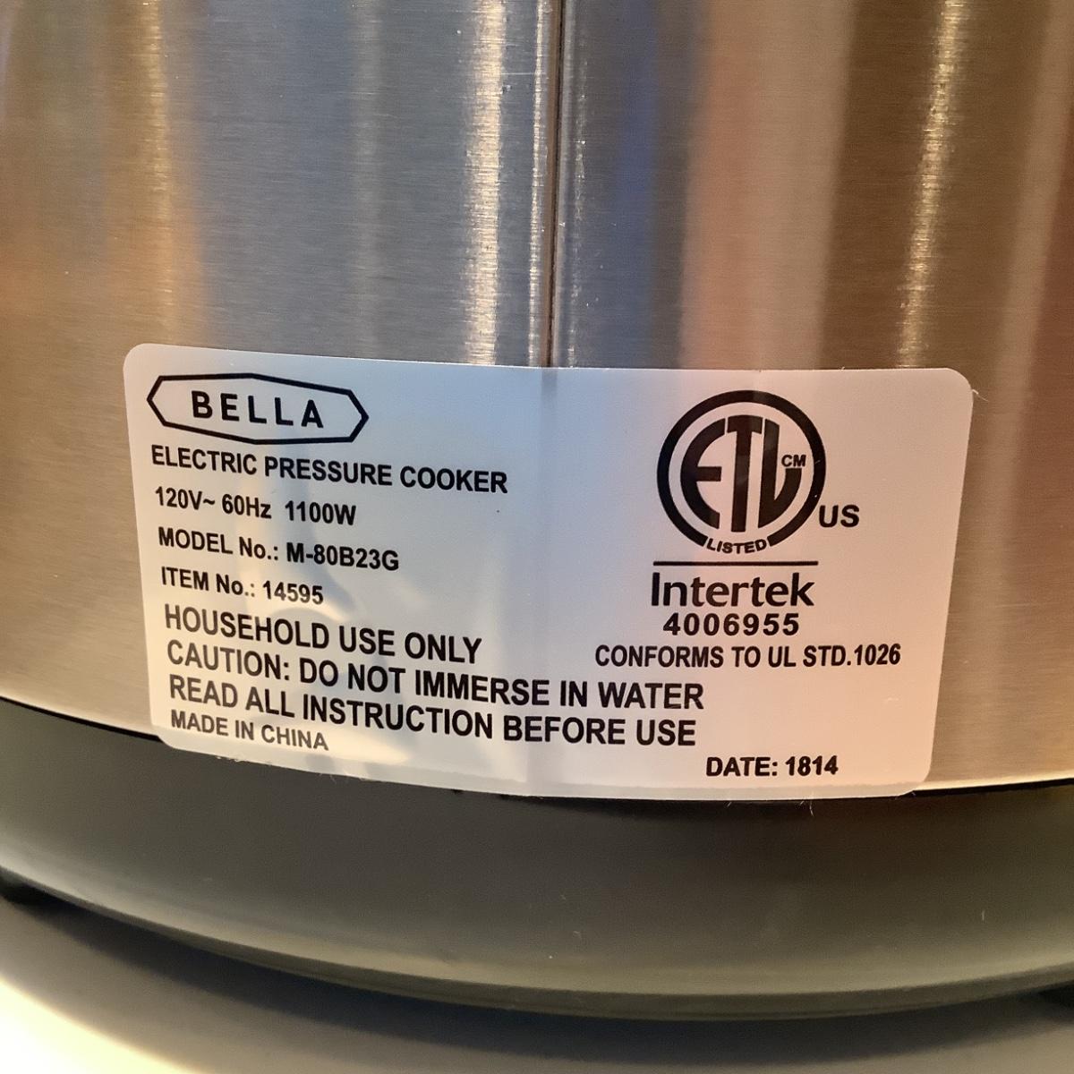K1146 BELLA 8qt. Pressure Cooker