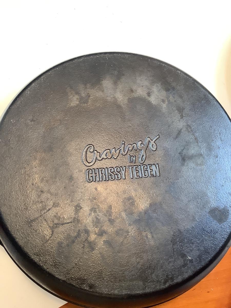 Large round with handles is 13.75” round and is by Cravings Chrissy Teigen