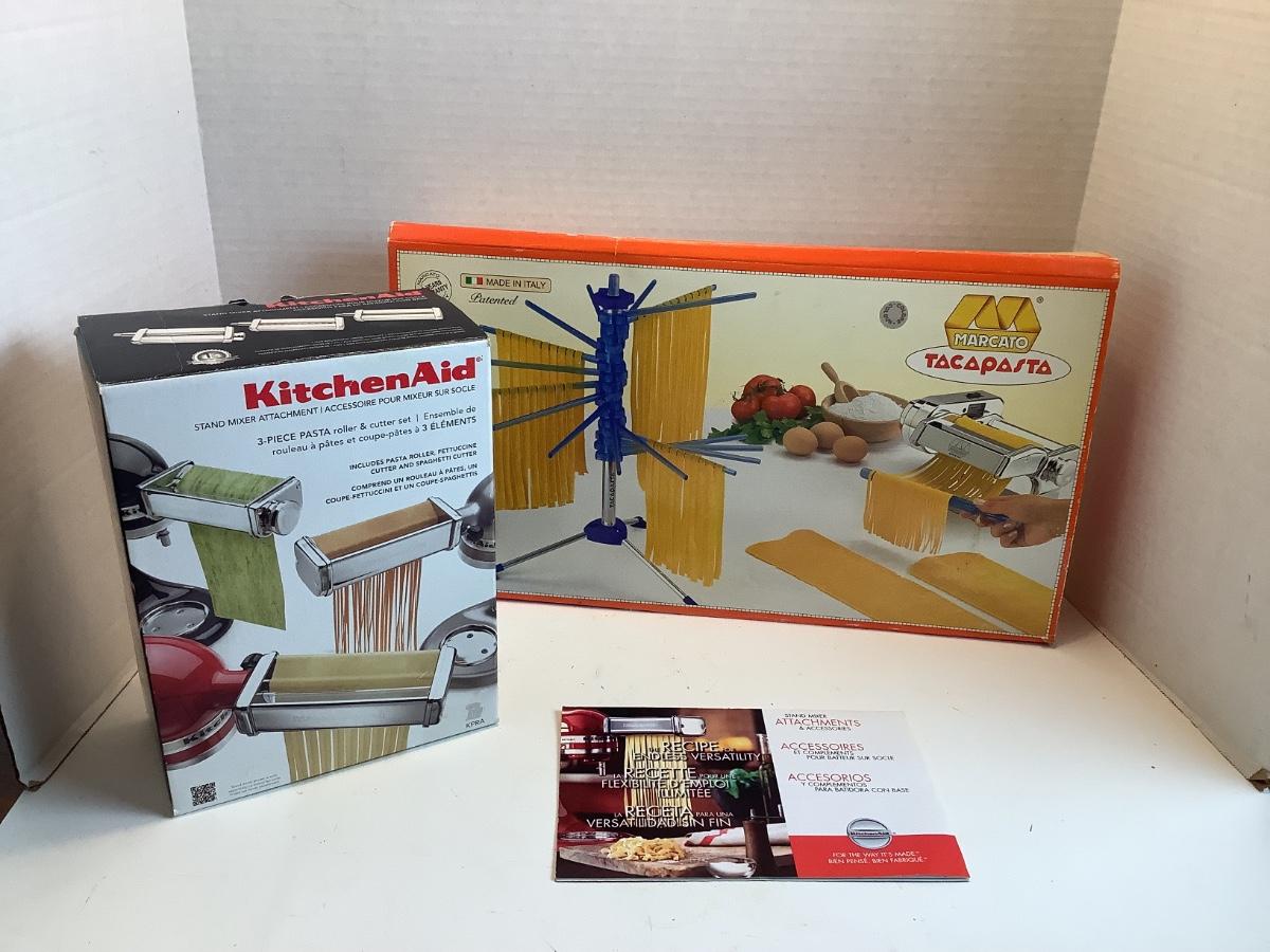 Kitchen aid model # KPAA 3 piece attachment pasta roller and cutter with Marcato pasta dryer