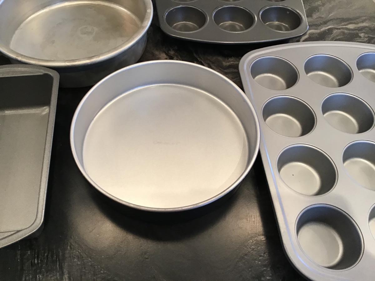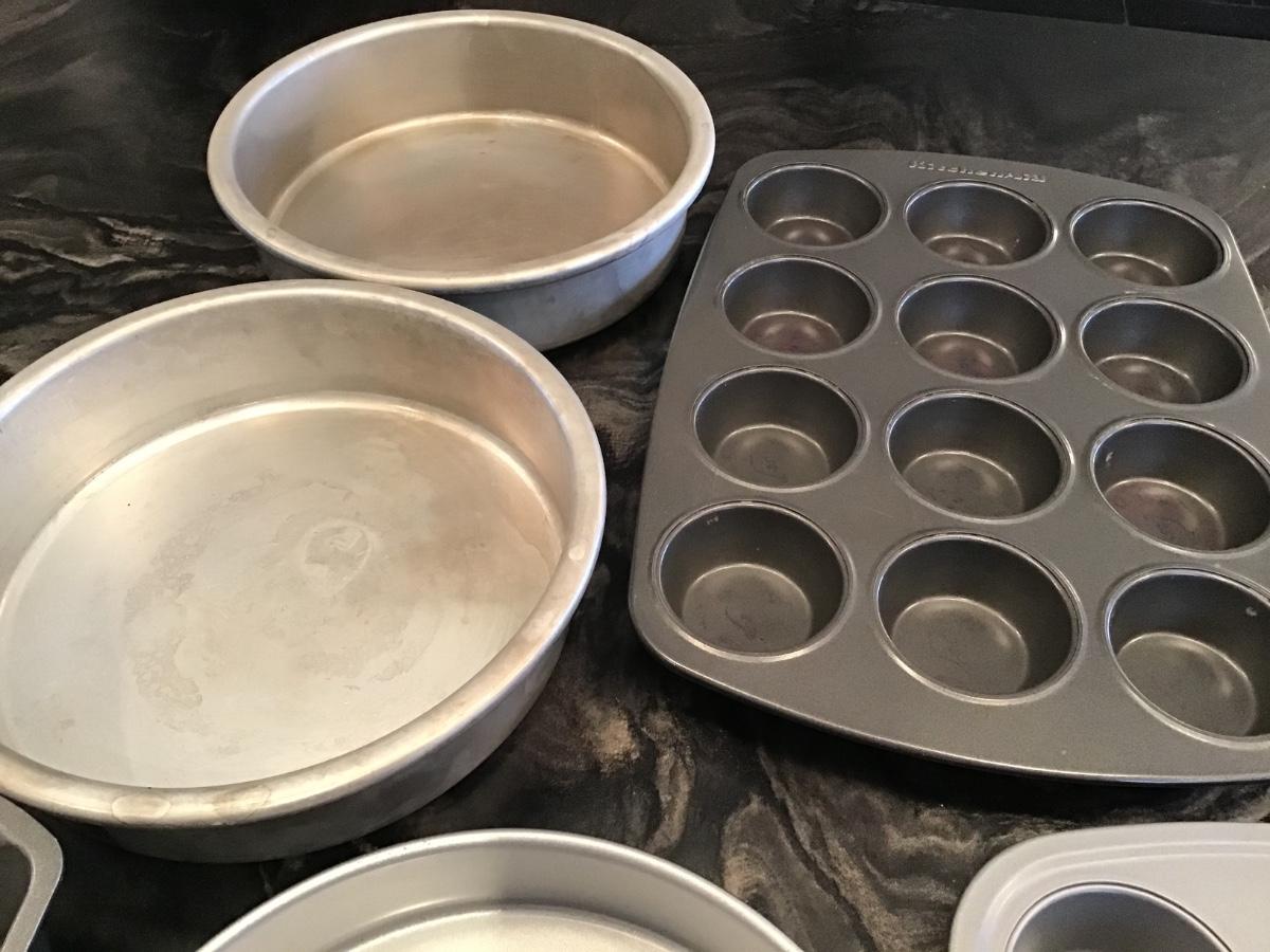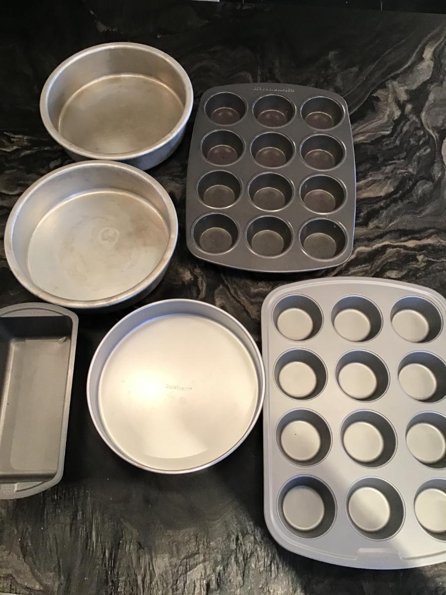 3 Round Cake Pans, 2 Muffin Pans, Bread Pan