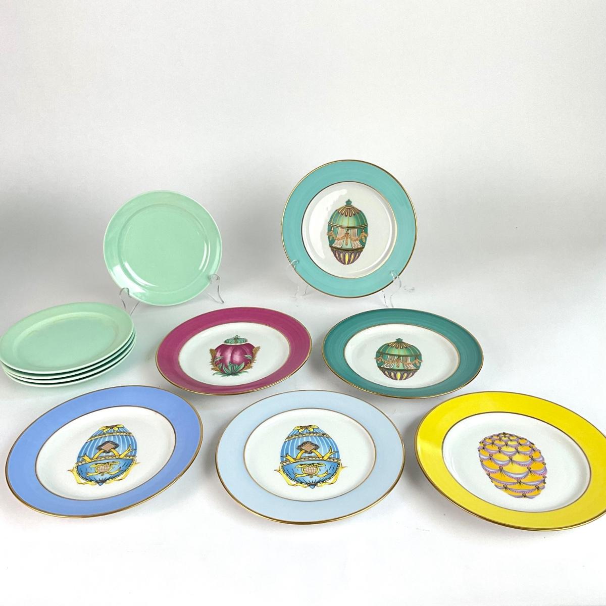 Comes with 6 porcelain Limoges faberge egg plates and 5 mint green plates