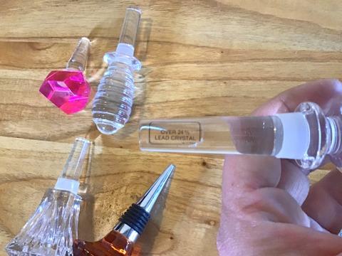 There are a lot of misc. bottle stoppers included but please note the Versace bottle stopper is chipped.