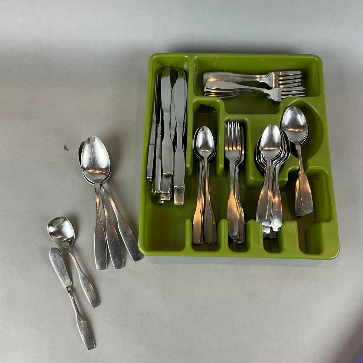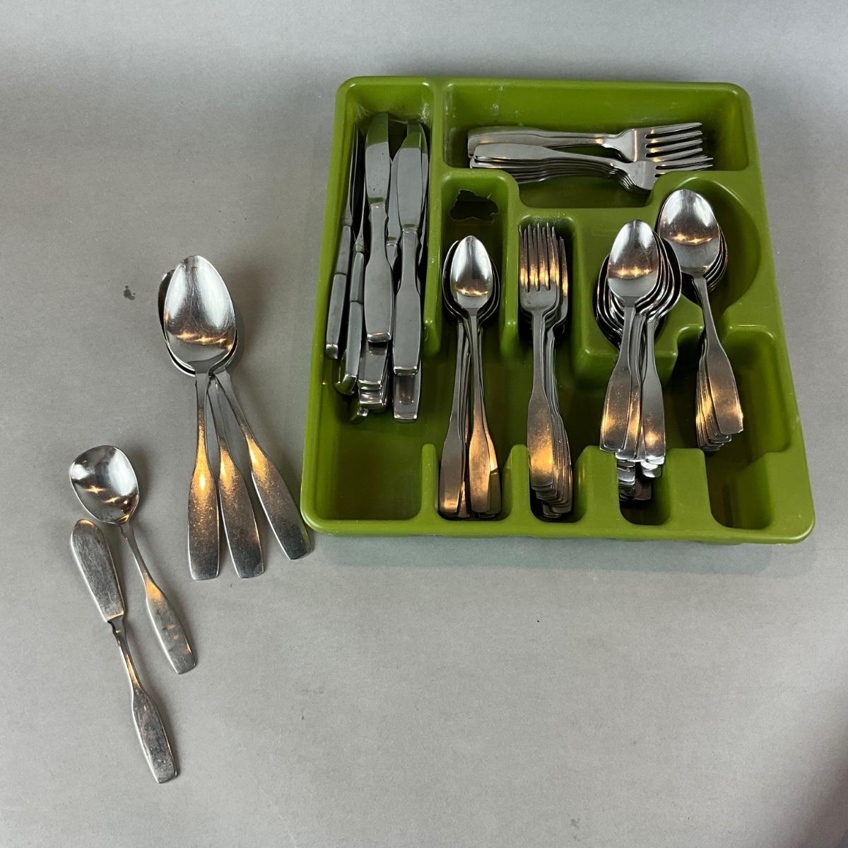 12 tablespoons, 23 teaspoons, 13 knives, 6 iceteaspoons, 11 dinner forks, 13 salad forks, 3 large serving sppns, on e sugar spoon, one butter spreader