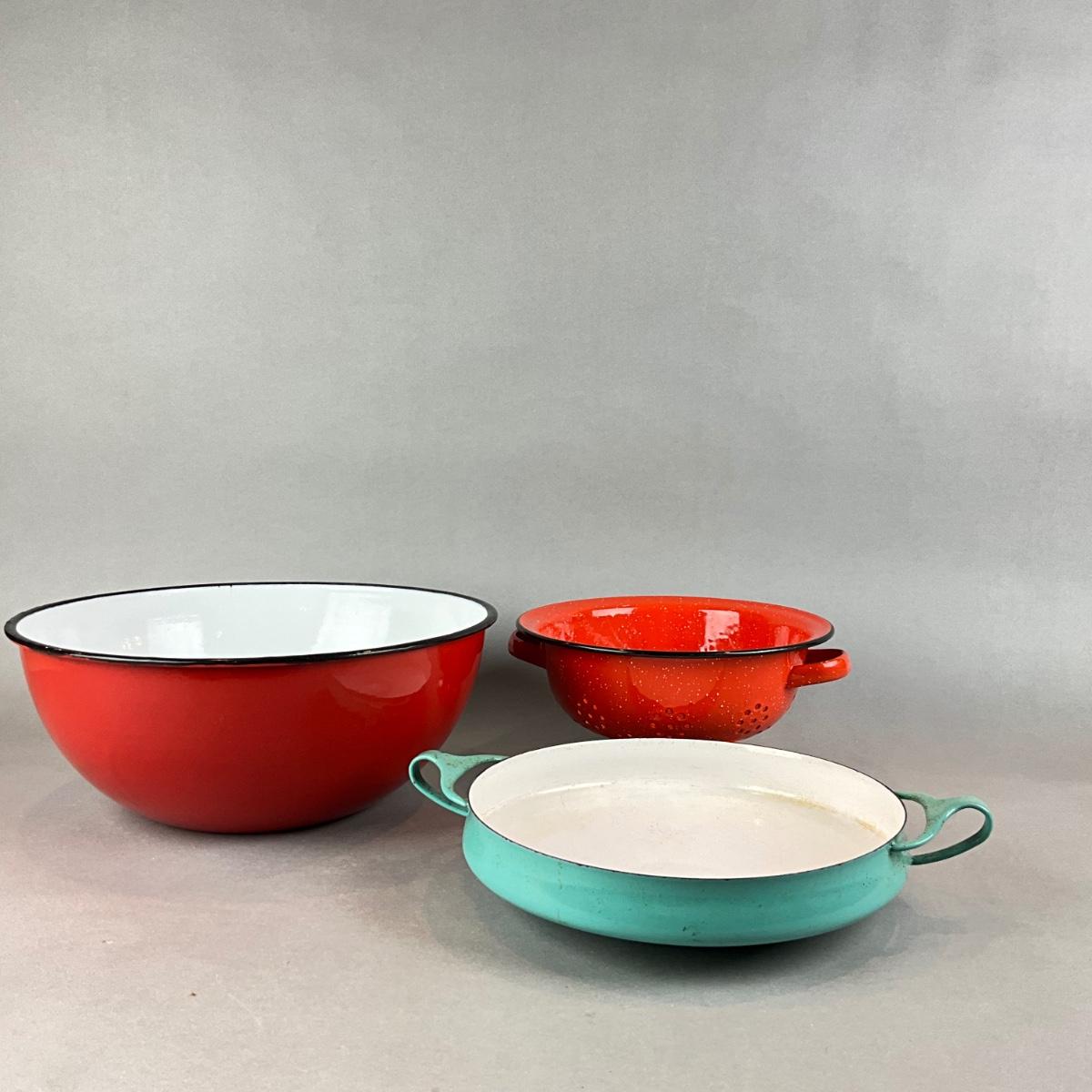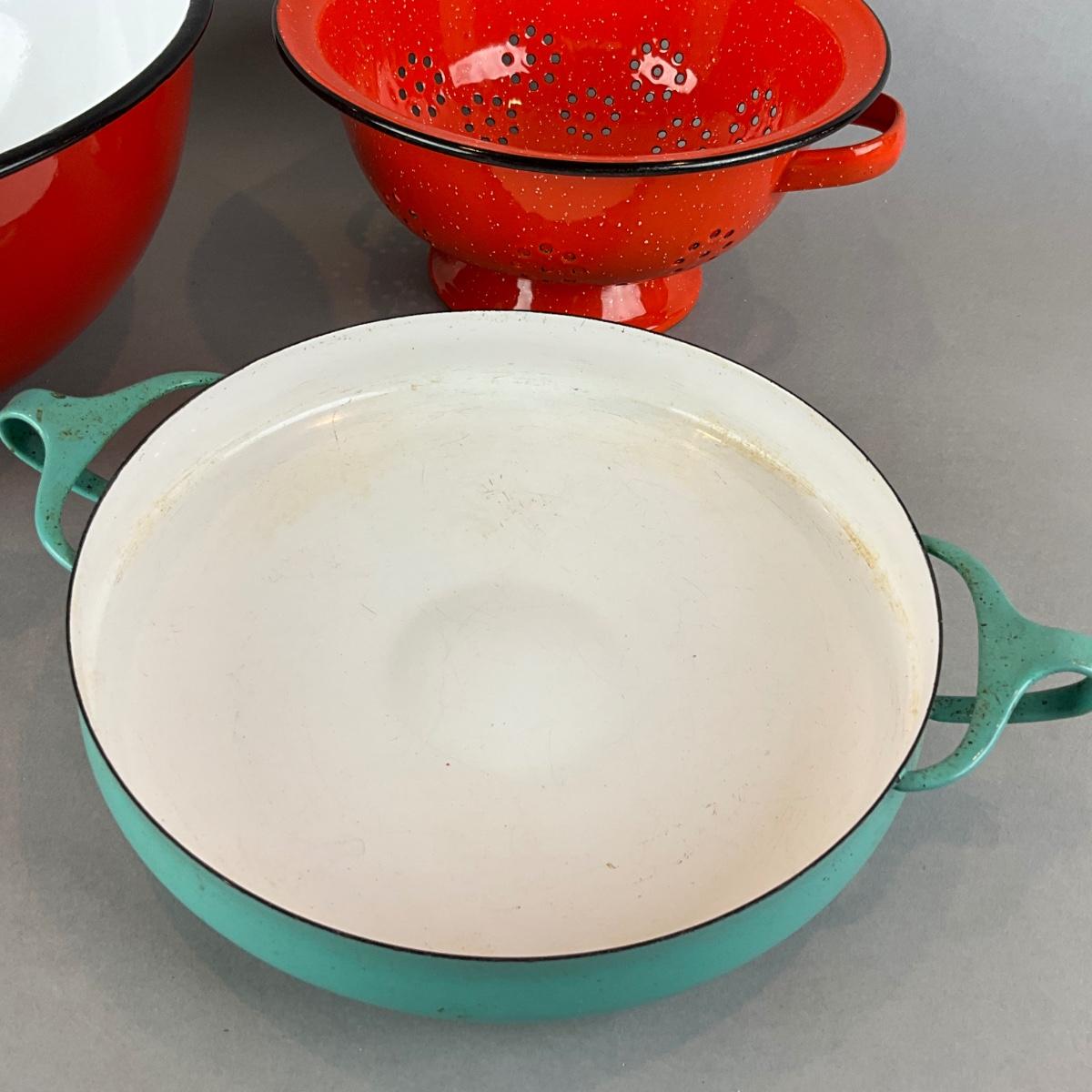 K1404 Vintage Enamel Dansk Kopenstyle Bowl and Cookware Lot