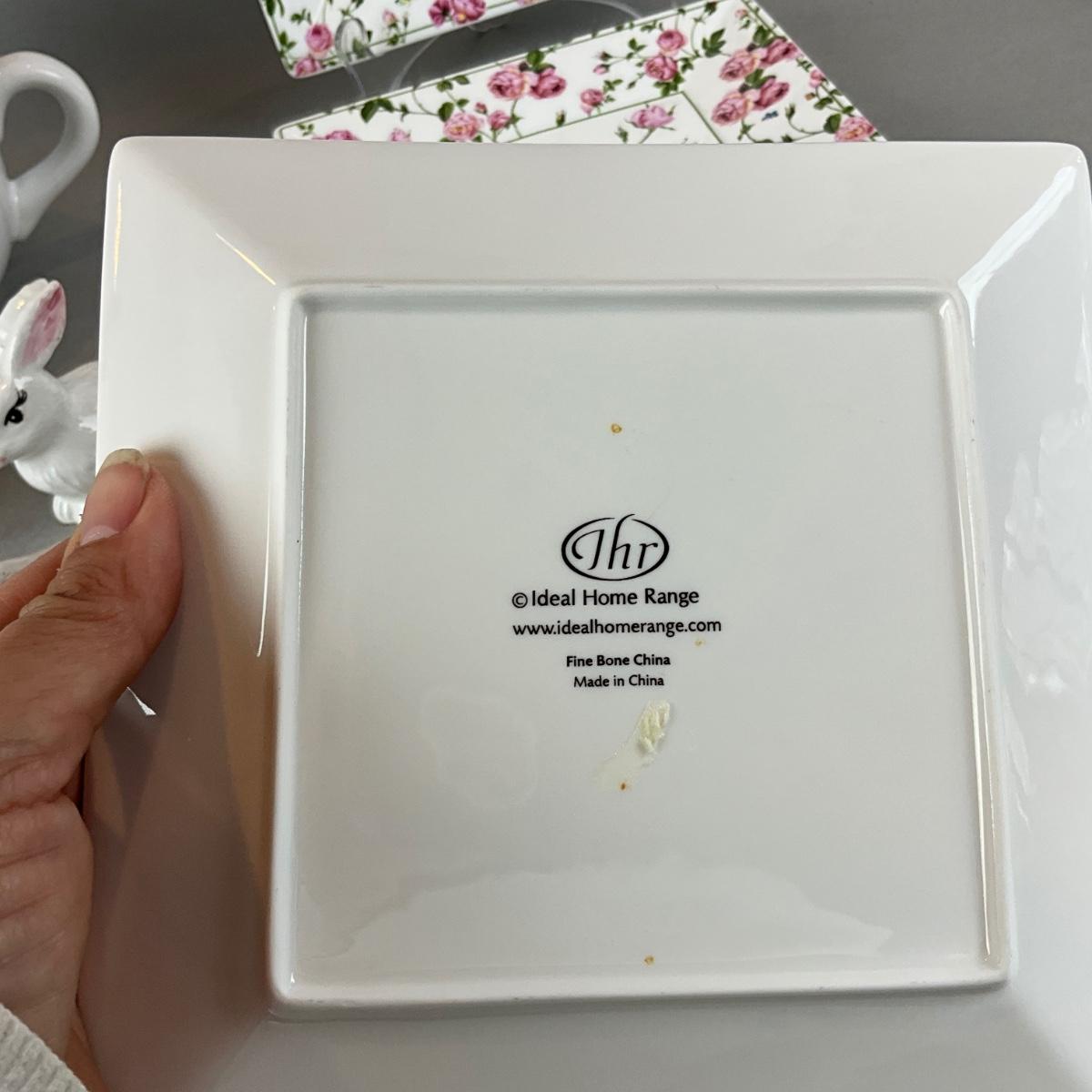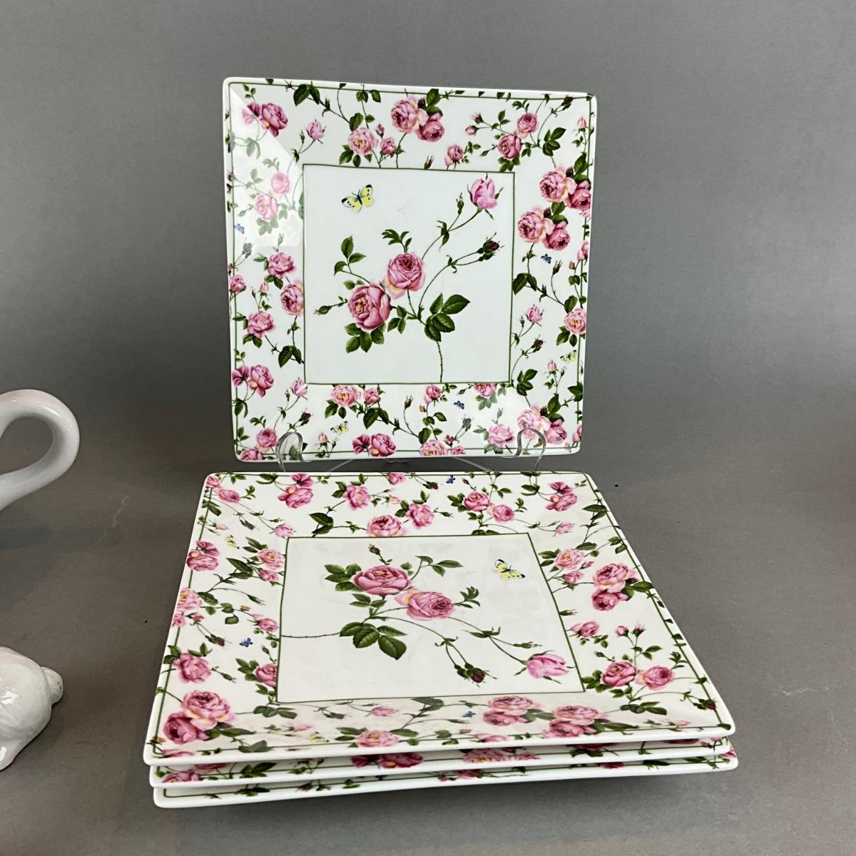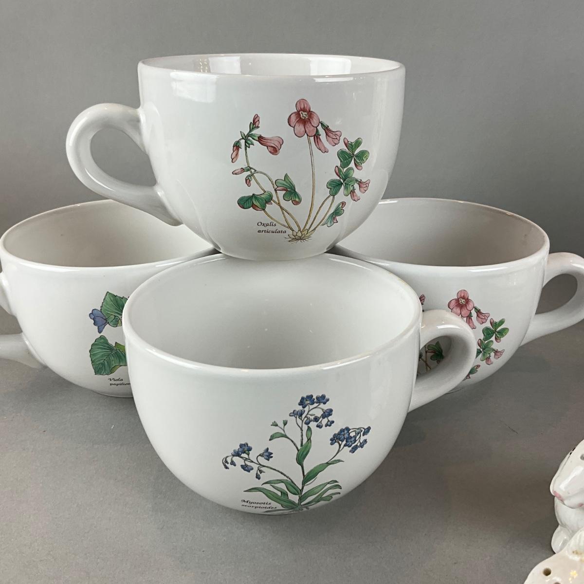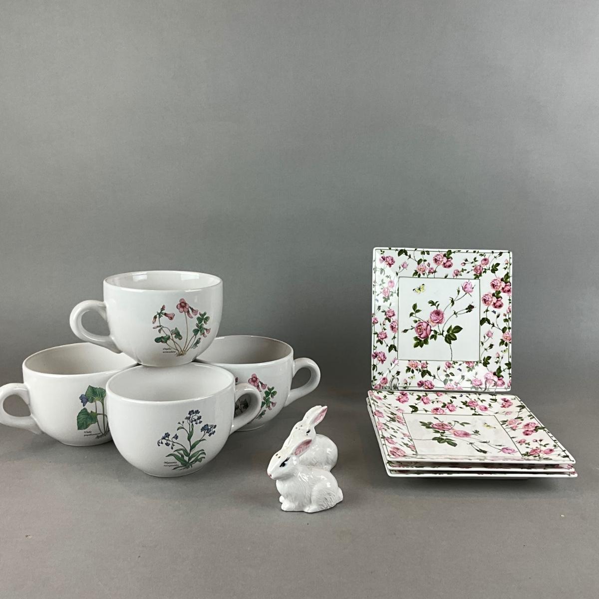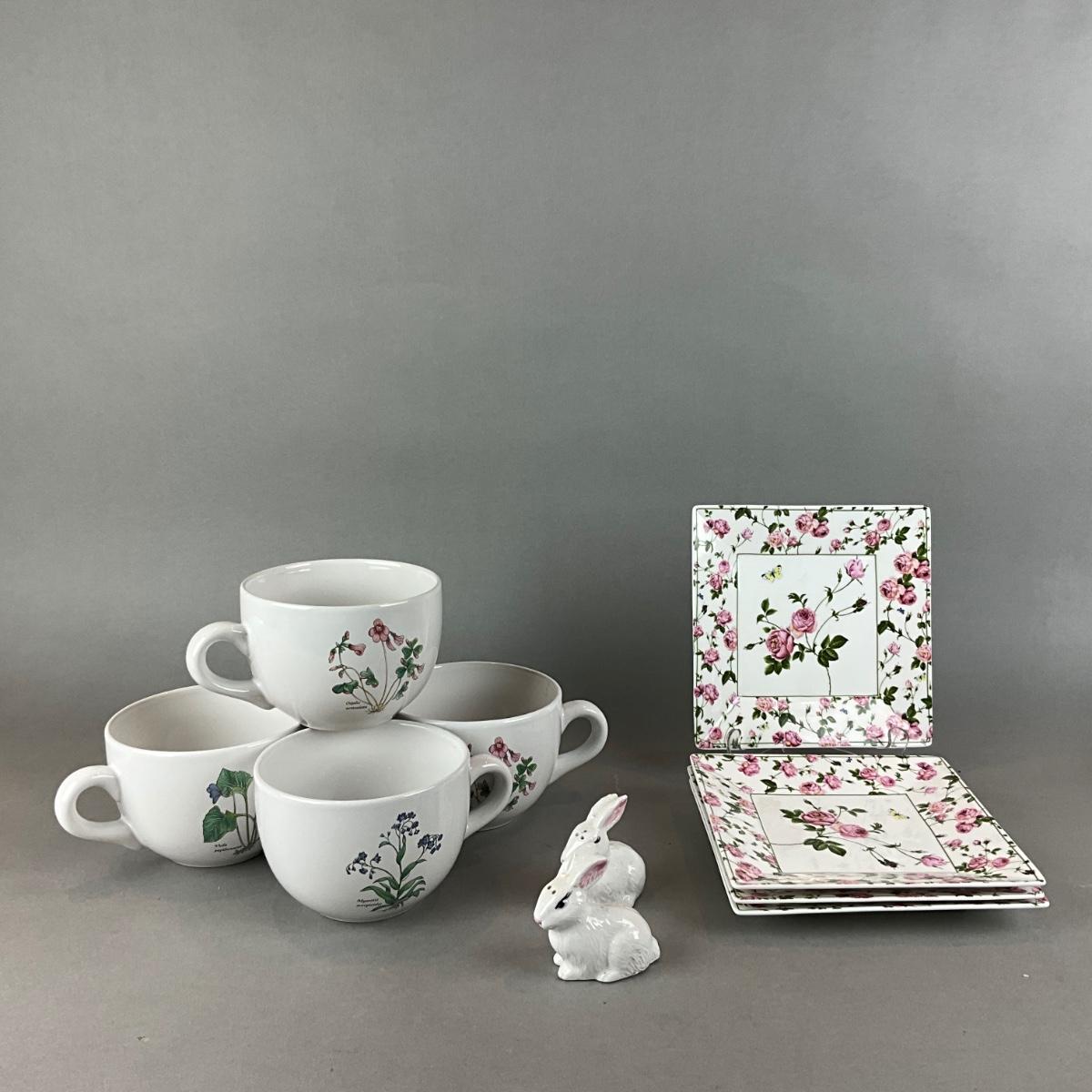 K1415 Set of Four Large Soup Mugs and Floral Luncheon Plates