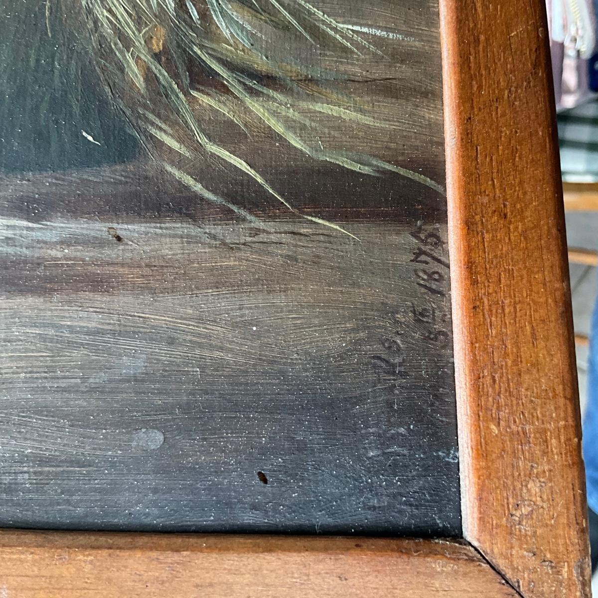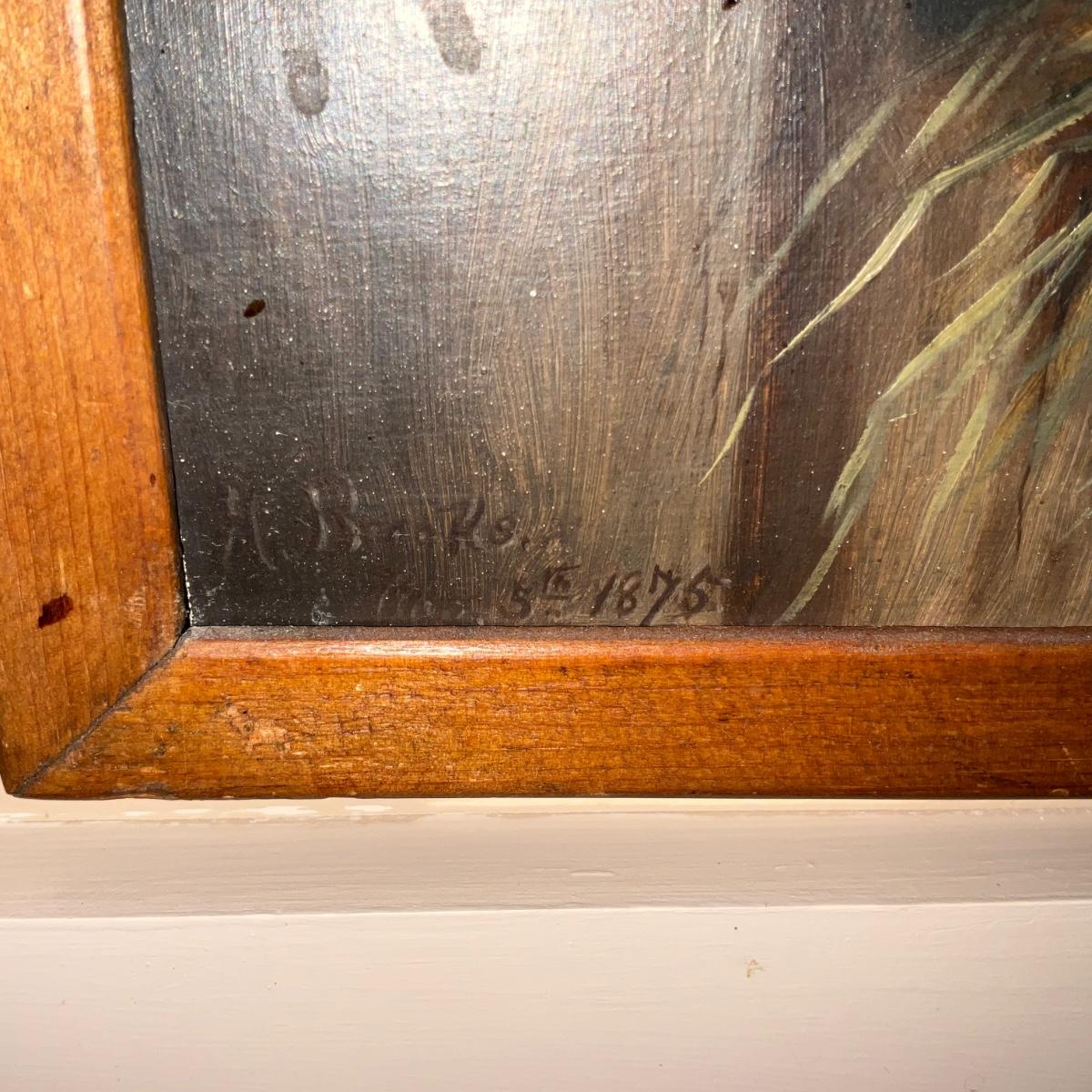 K1422 Antique Still Life Oil Painting on Board Dated 1875 Signed A. Brooks