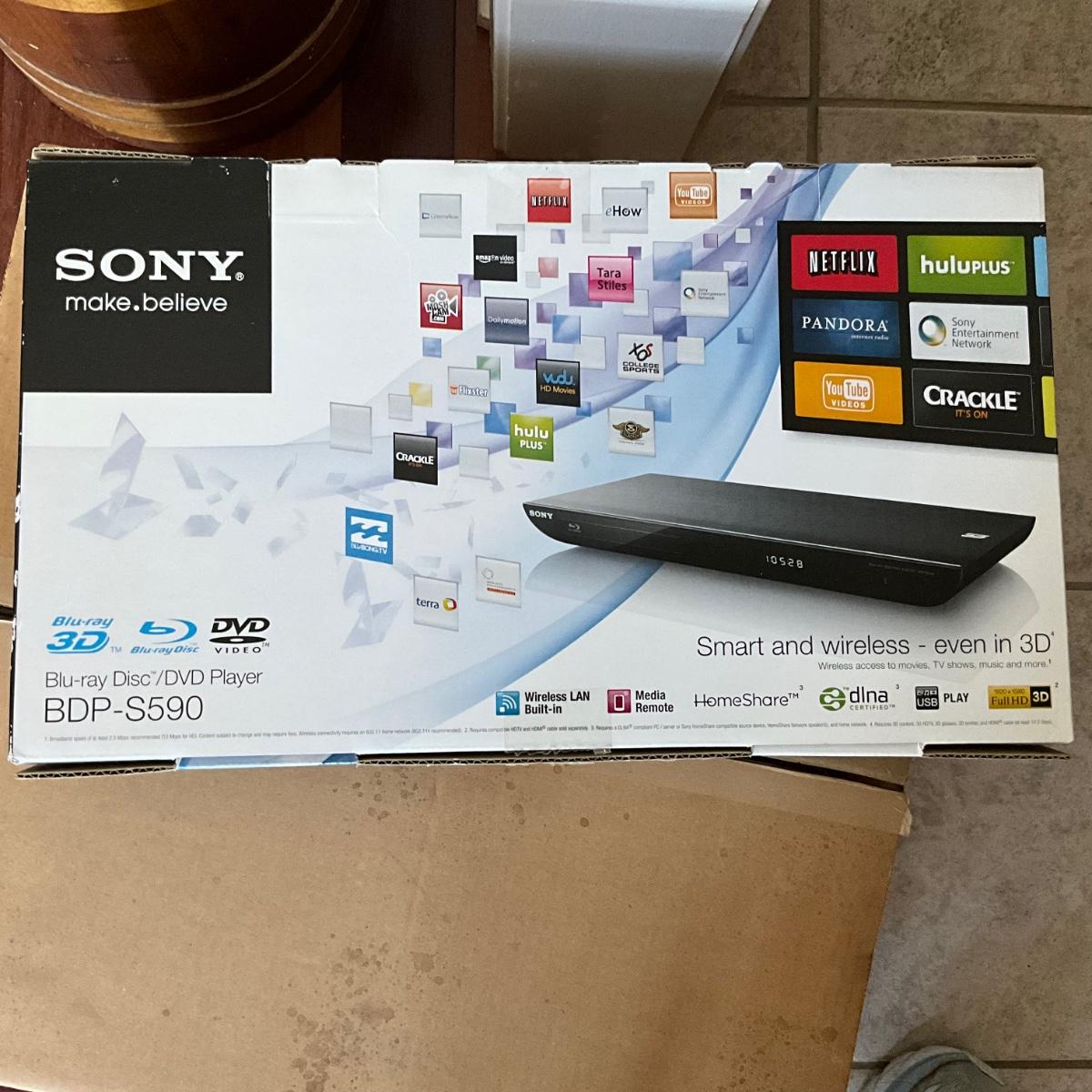 Sony is BDP-S590 3D Blu-ray Disc Full HD 1080p playback. Built-in Wi-Fi. Sony Entertainment Network: Netflix, YouTube, Pandora, Hulu Plus& more. Media Remote app for iPhone/iPad & Android phones. Share music throughout home with Home Share.Input/Output Connectors:
