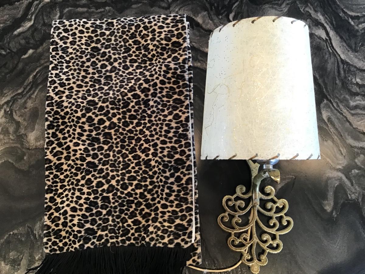 K147 - Vintage Wall Mount Lamp & Leopard Table Runner
