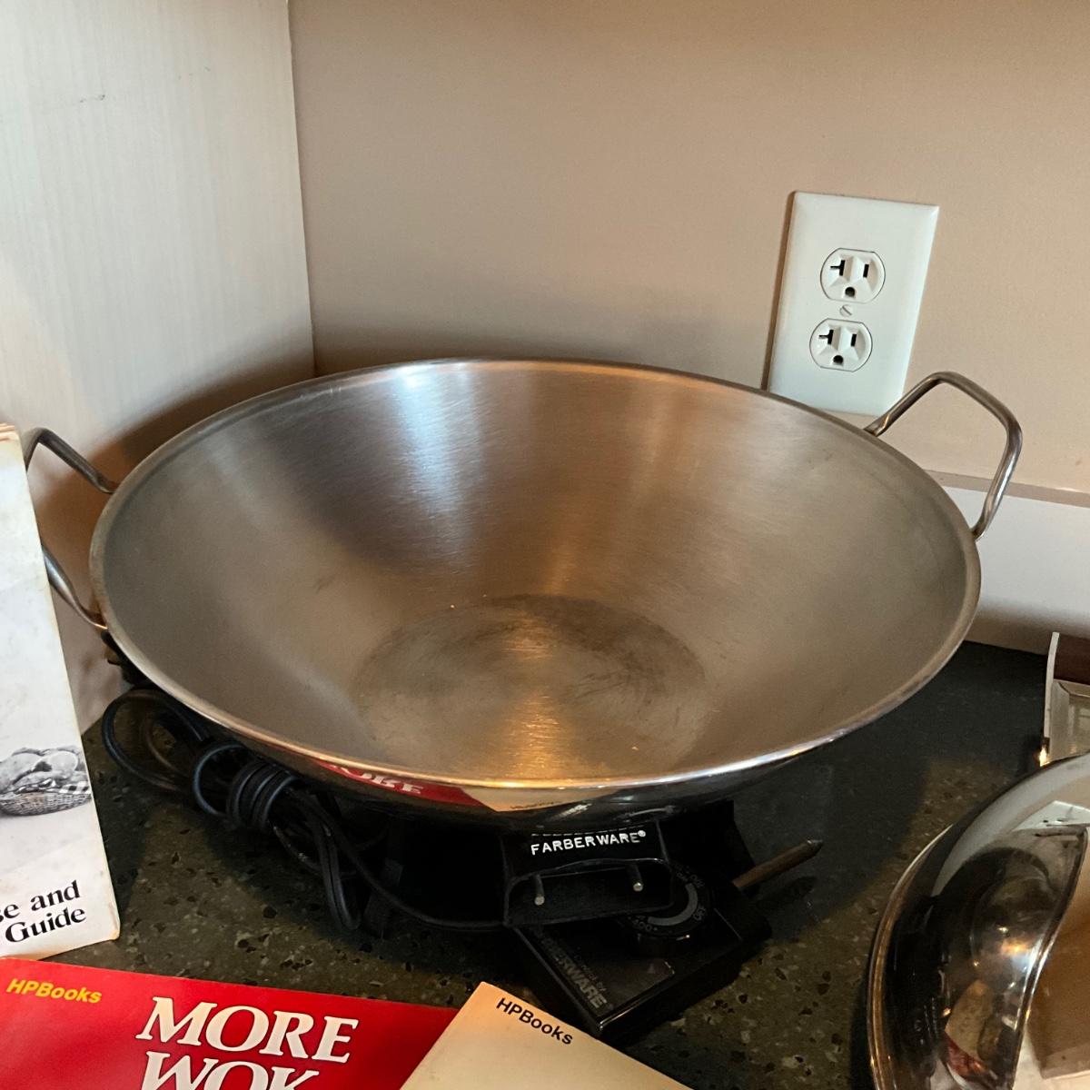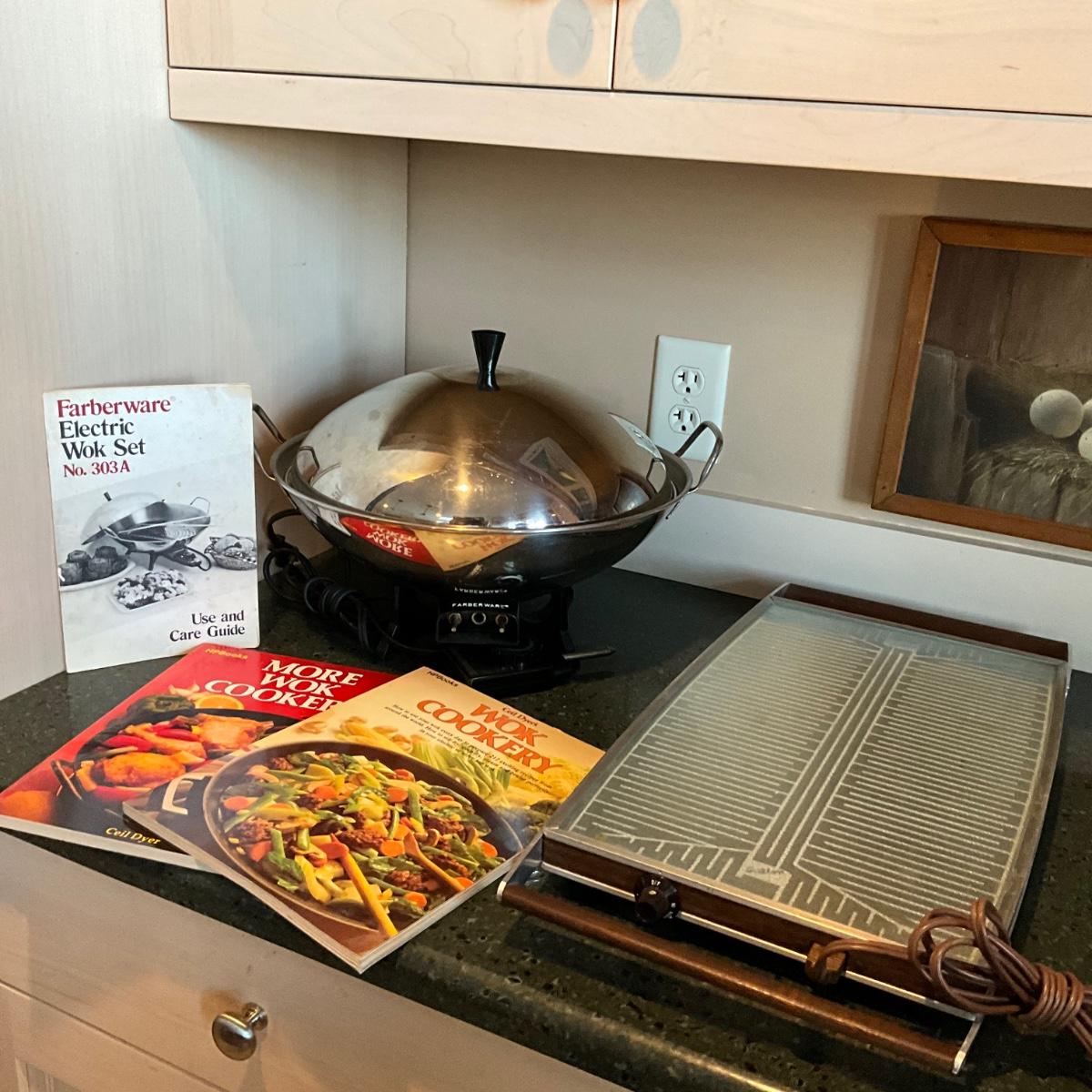 K1473 Vintage Farberware Electric WOK and Salton Warming Tray with Cookbooks