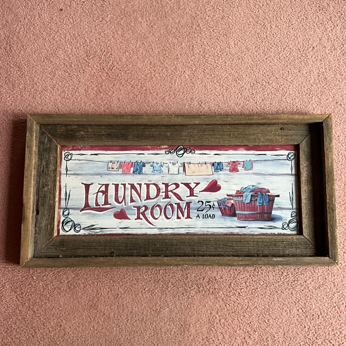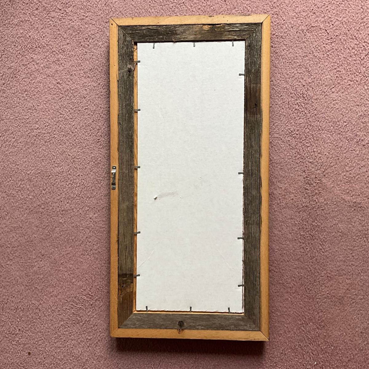 Print on board framed in a rustic frame measuring 12" high x 24" wide x 1.5" deep