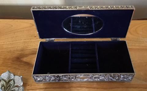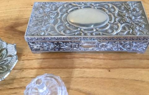 Silverplate box is 4" dia. x 9" wide x 2.-1/4" tall.