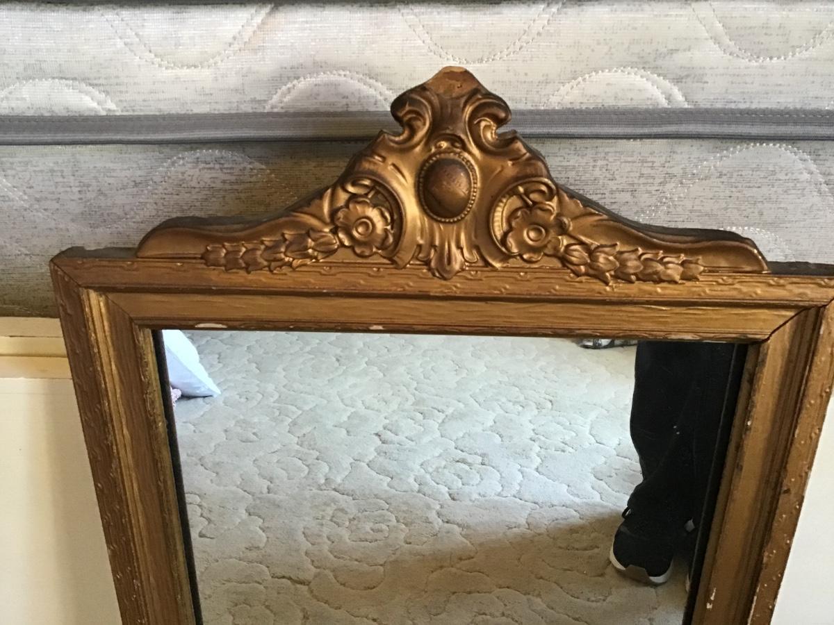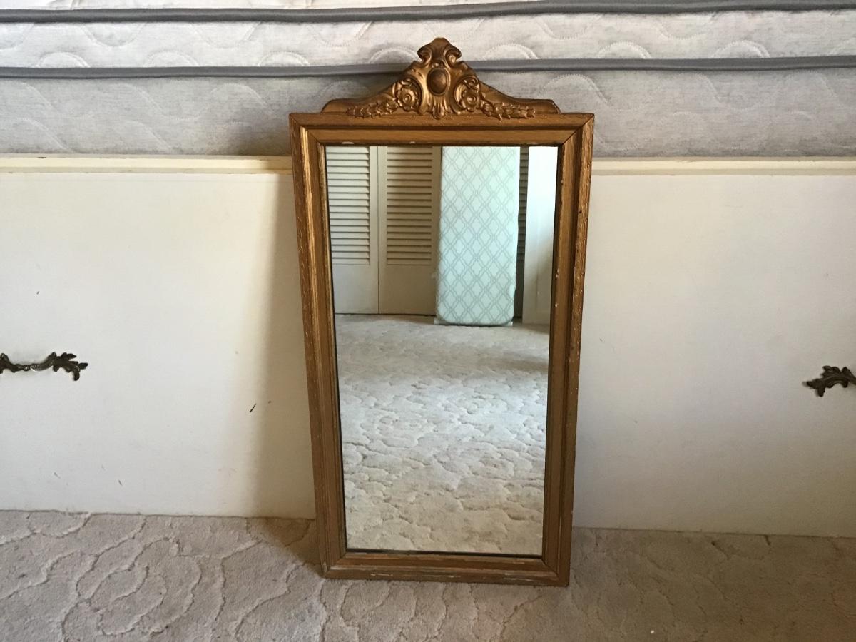 K158 - Vintage Gold Tone Mirror 14.5”x30”