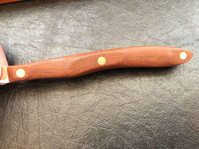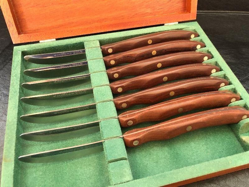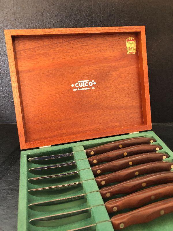 This is a nice Cutco steak knife set but it is missing one knife. This comes in original carrying case and knives do not look to have been used. Please see all pictures for exact contents of the lot, condition of the items, and if measurements if taken. Thank you for looking and have fun bidding.
