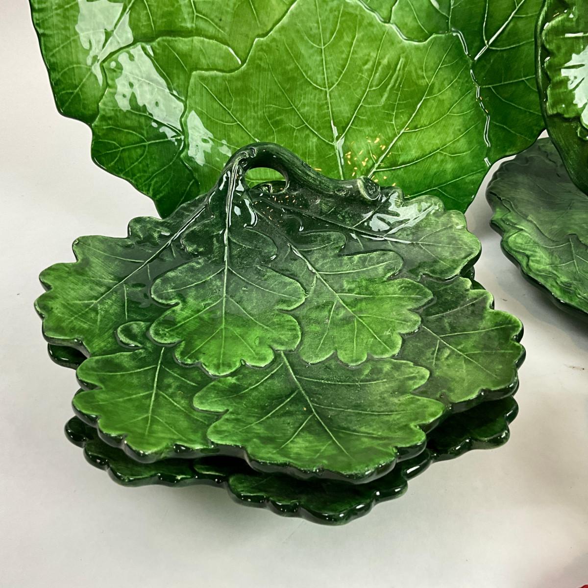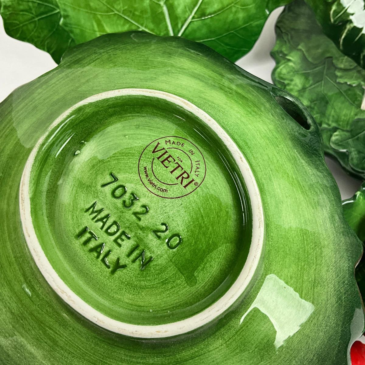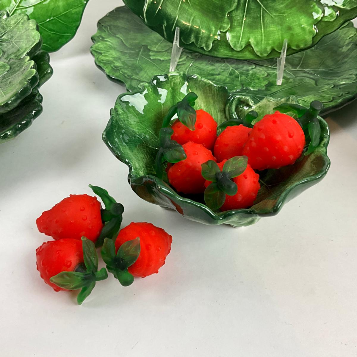 K187 Large Set Of Vietri Green Leaf Majolica With Glass Strawberries