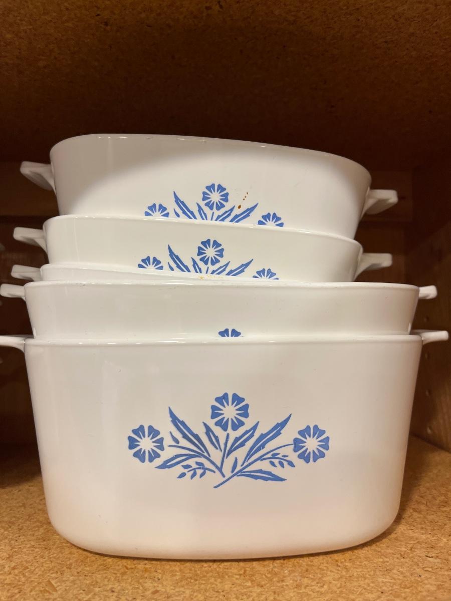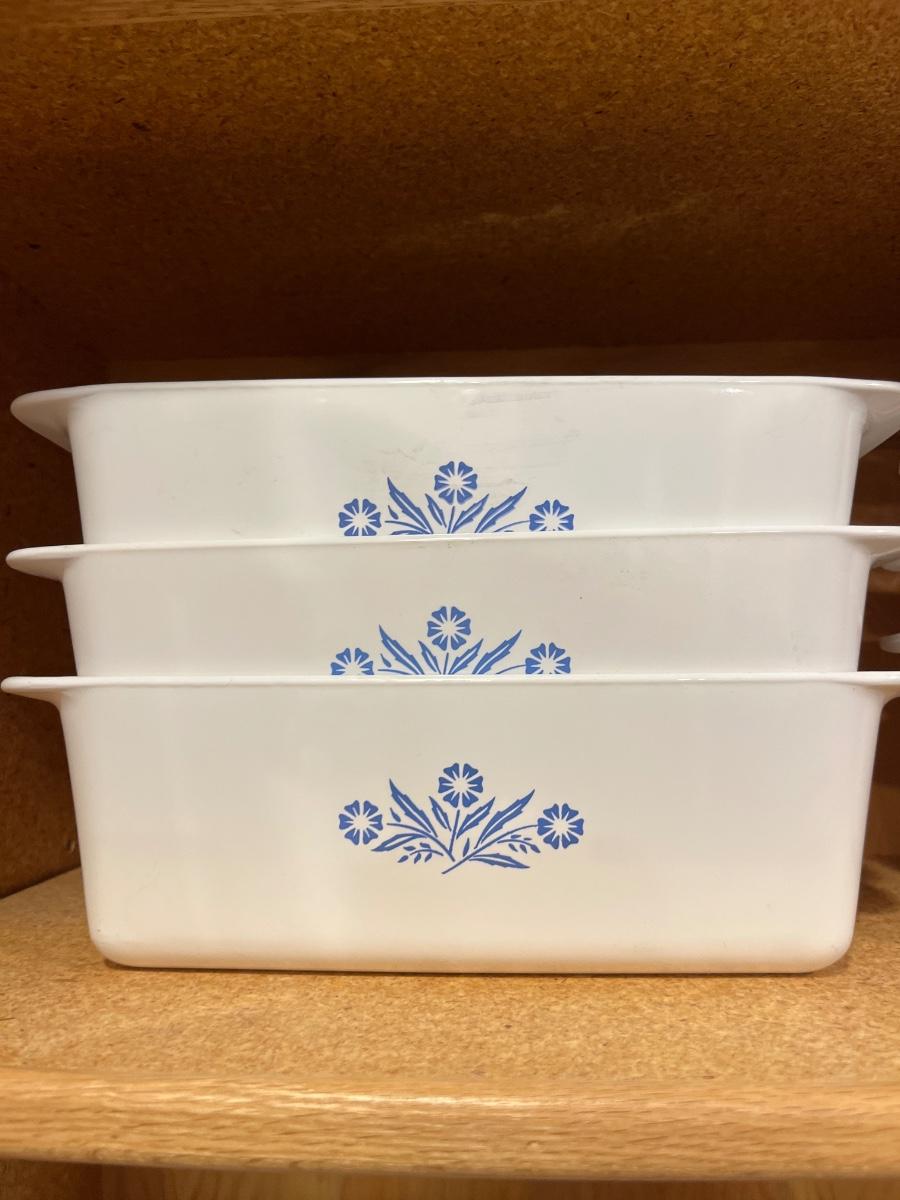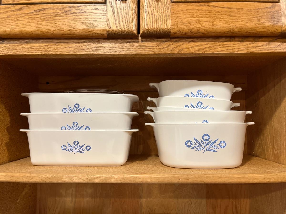 See pics. 2 lids for large square (& 2 bonus lids), other dishes do not have lids