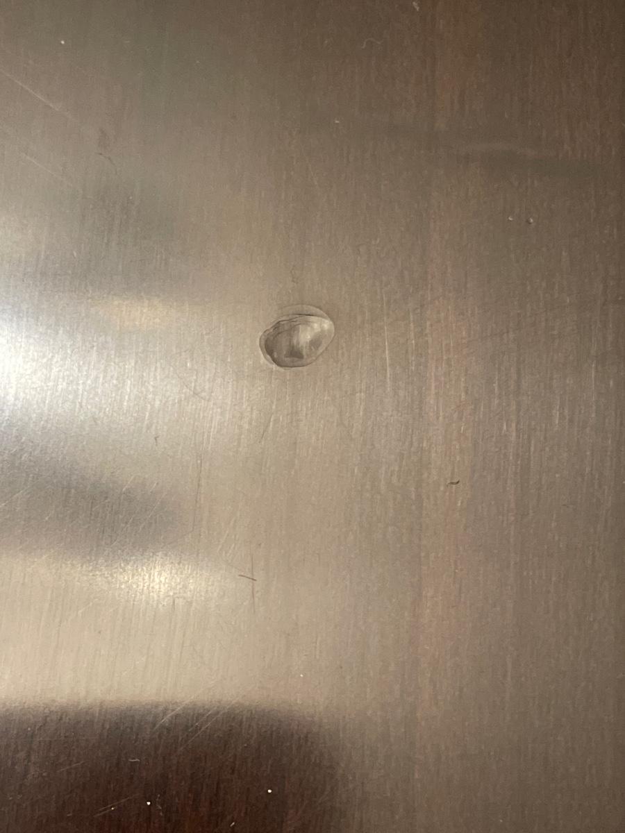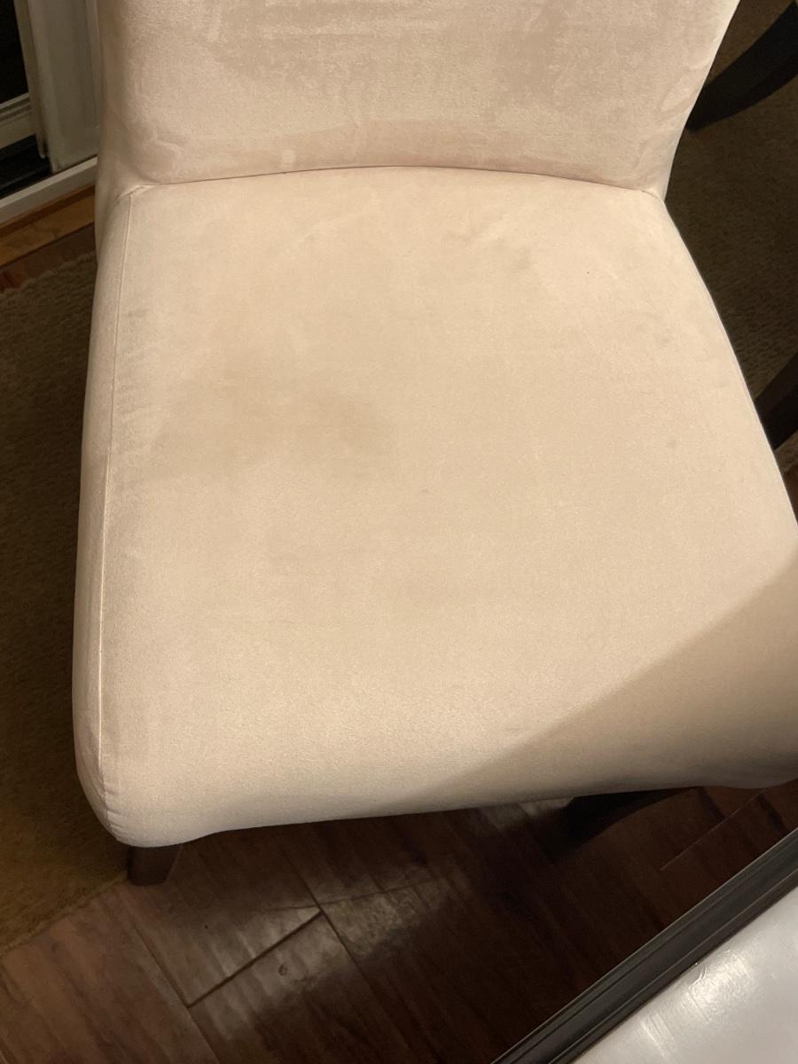 There are minor flaws on the surface of the table and chairs have minimal stains. Chairs do, however, have washable covers.