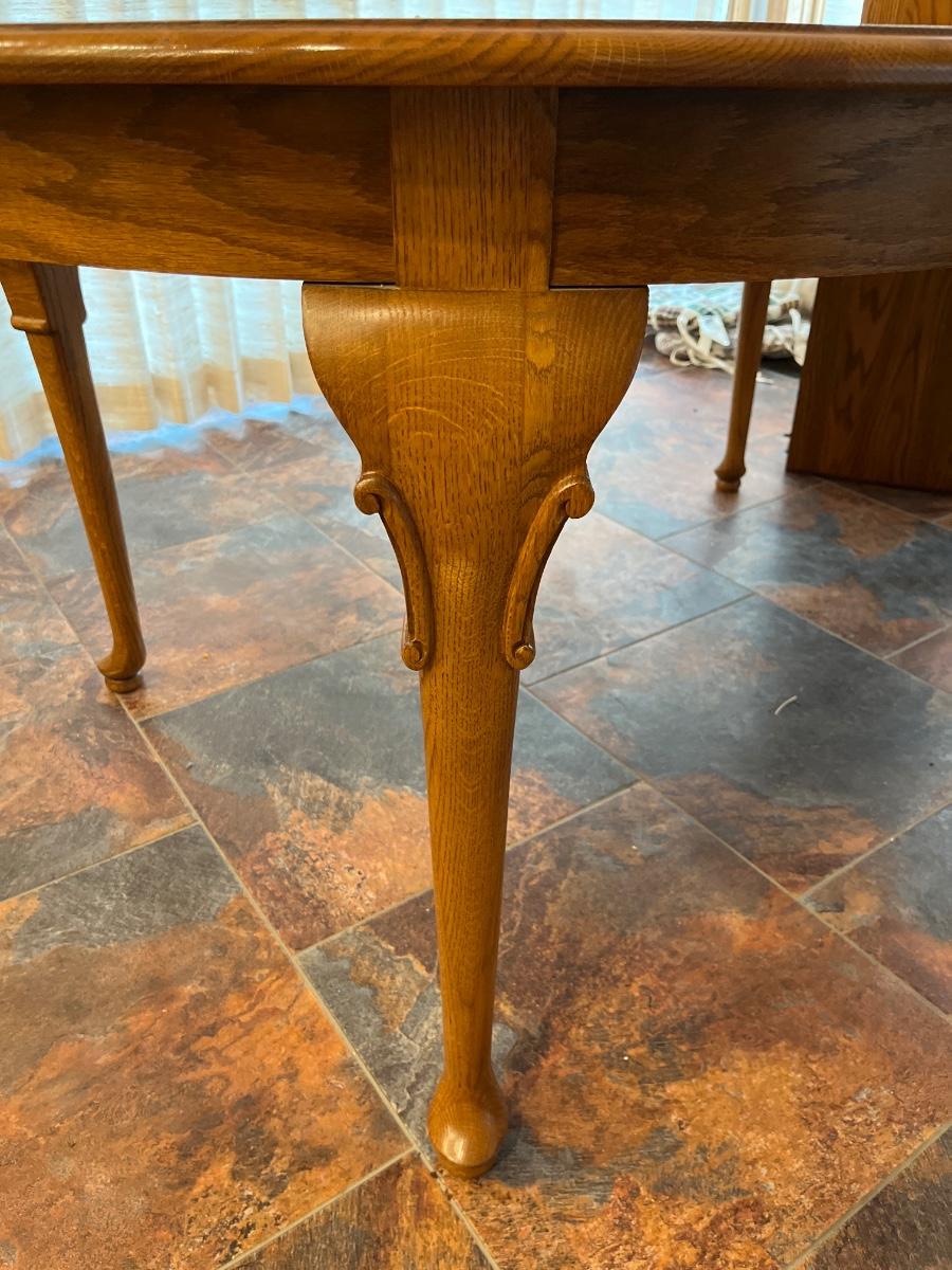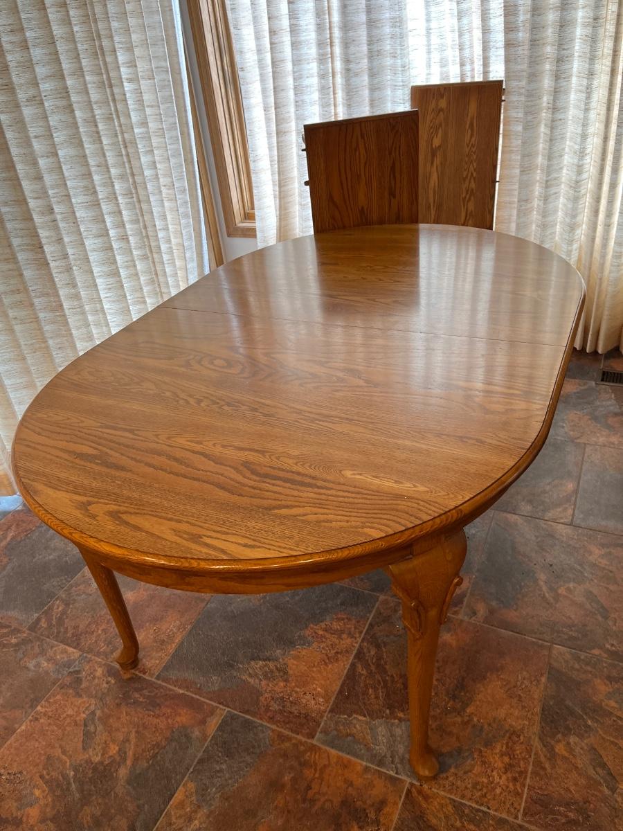 Includes two leaves each is 15 inches. Table is 66”x44” w/o leaves