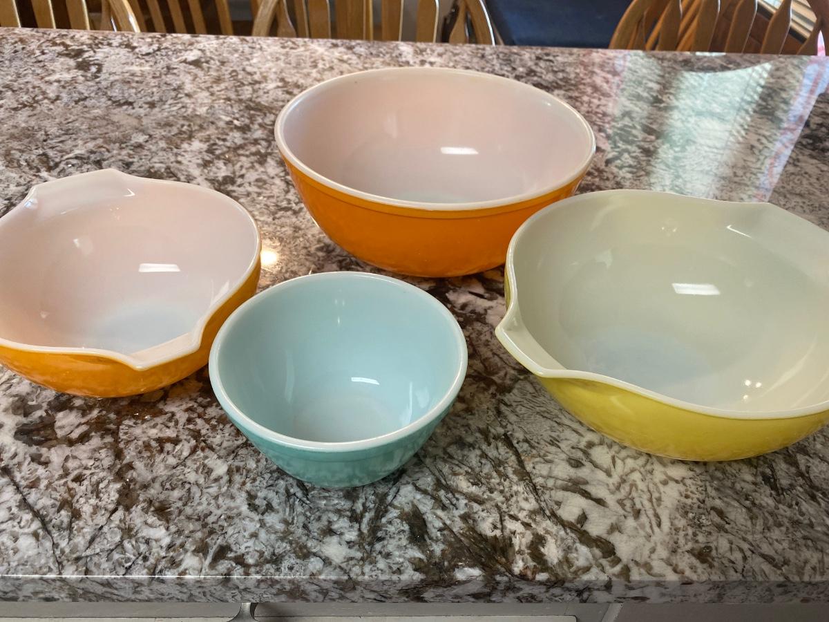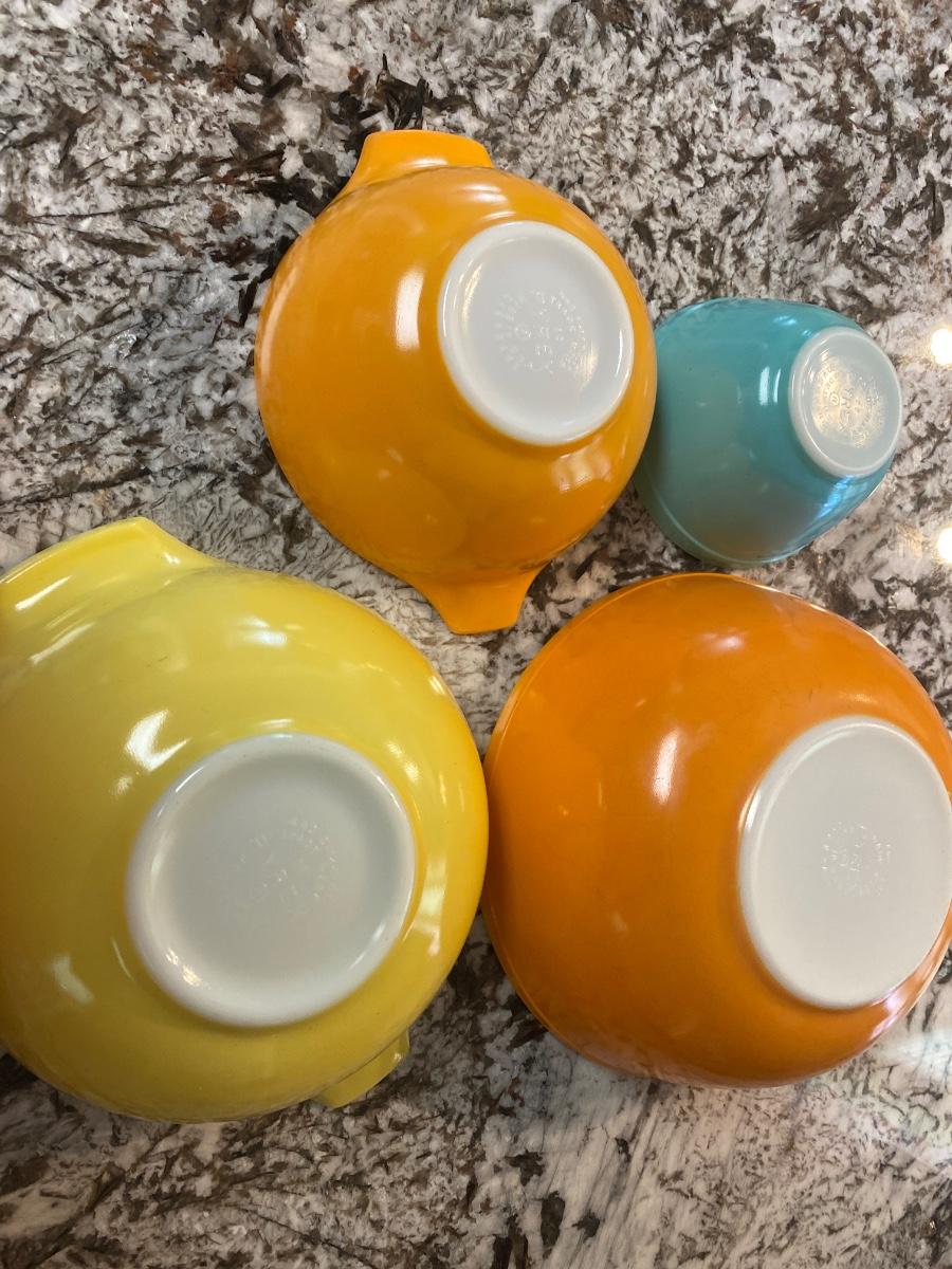 K2 4 Pyrex bowls, bowls have some scratching on the outside.