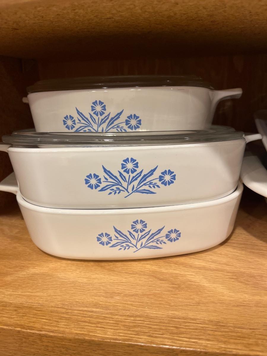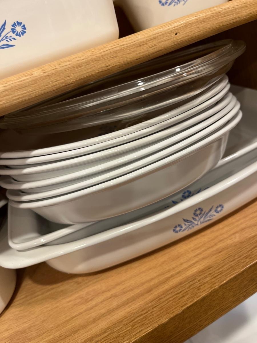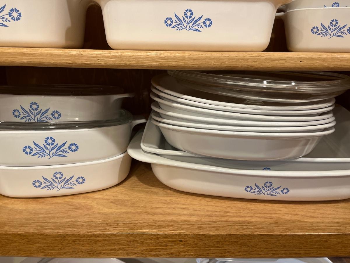 See pics. 11 PCs with 3 lids (just the one shelf of dishes)