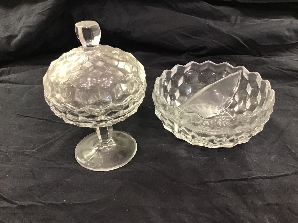 K22 - American Fostoria Candy Jar w/Lid, Divided Dish